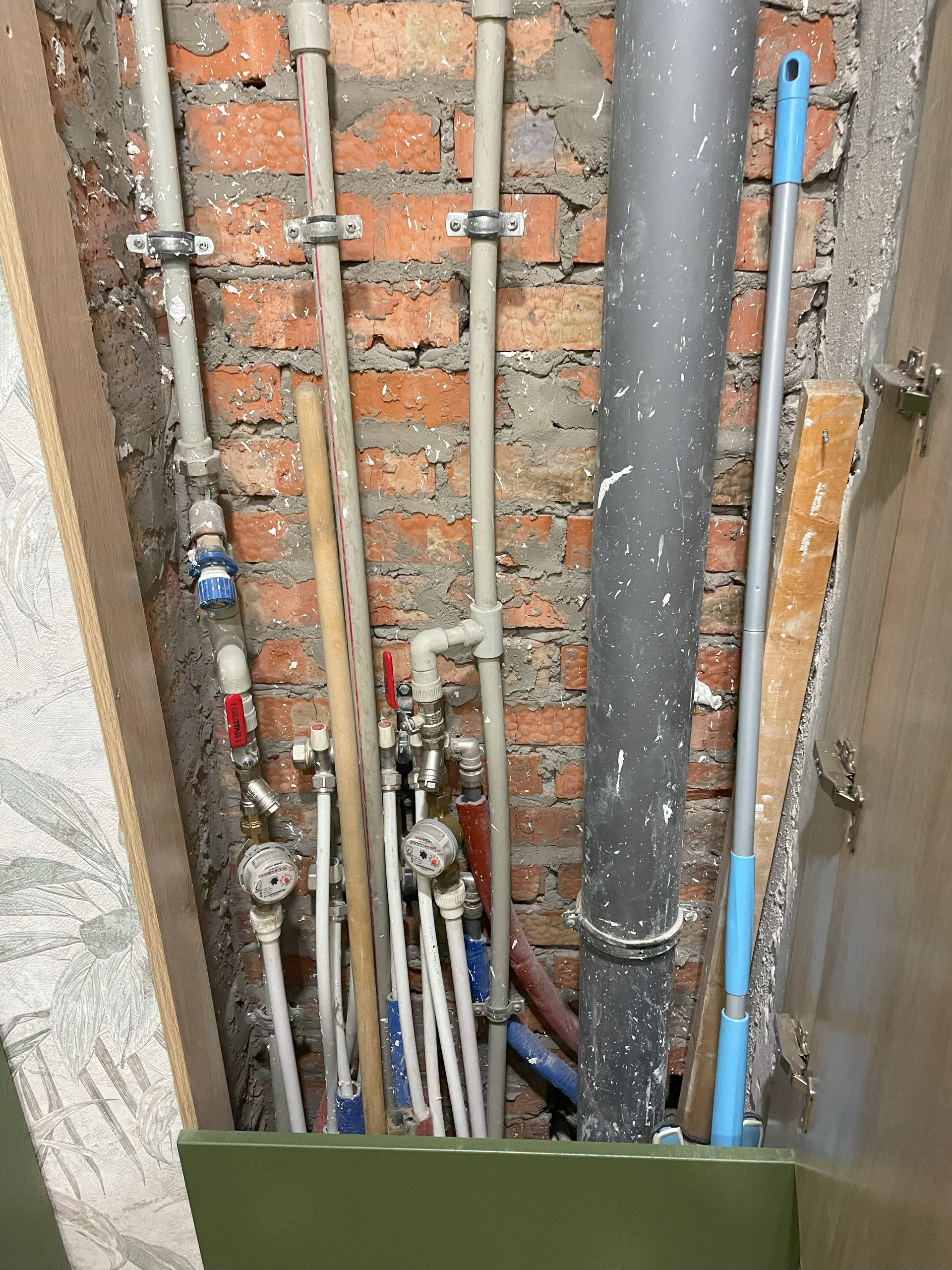 При ремонте были заменены трубы отопления и радиаторы. Установлен бойлер Haier ES80V-A2 на 80 литров (на случай отключения горячей воды).