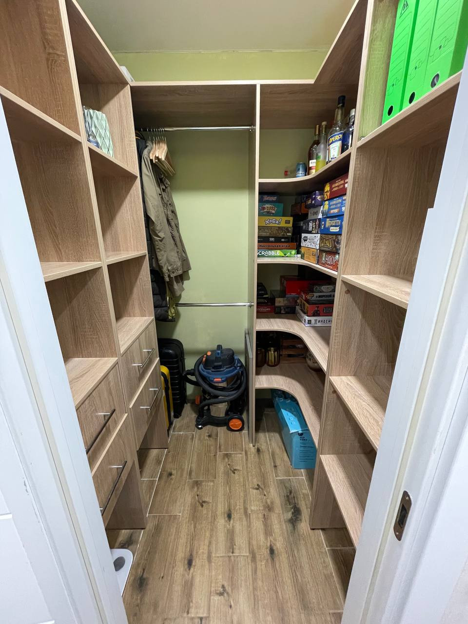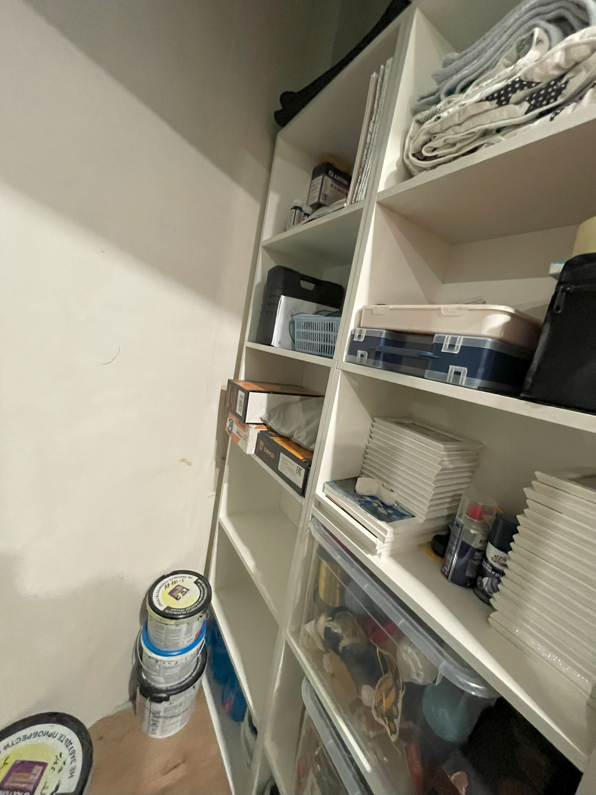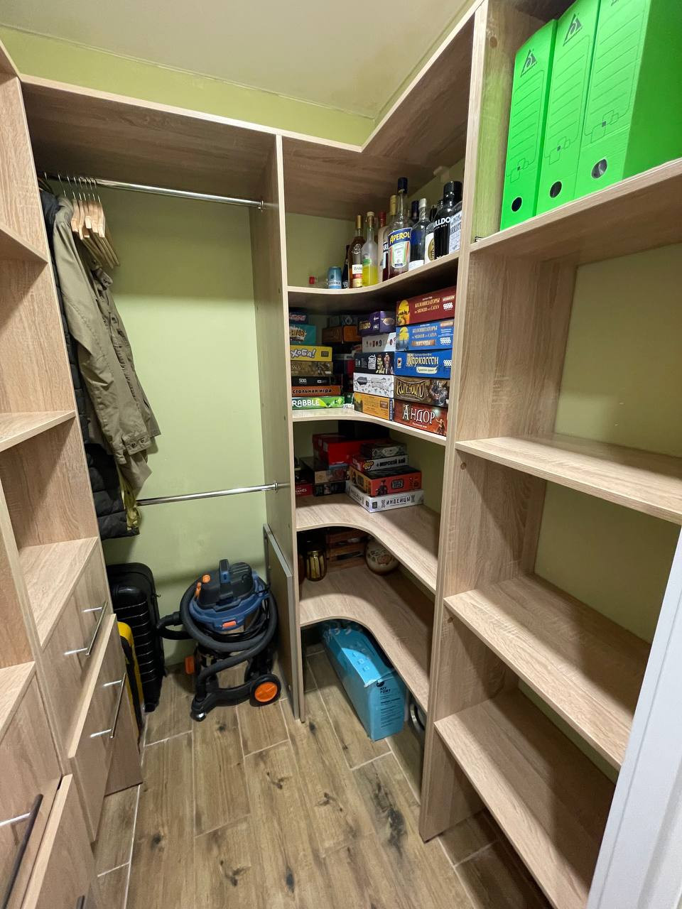 Большая кладовая для хранения вещей. Перед детской есть второй шкаф побольше, состоящий из трех секций.