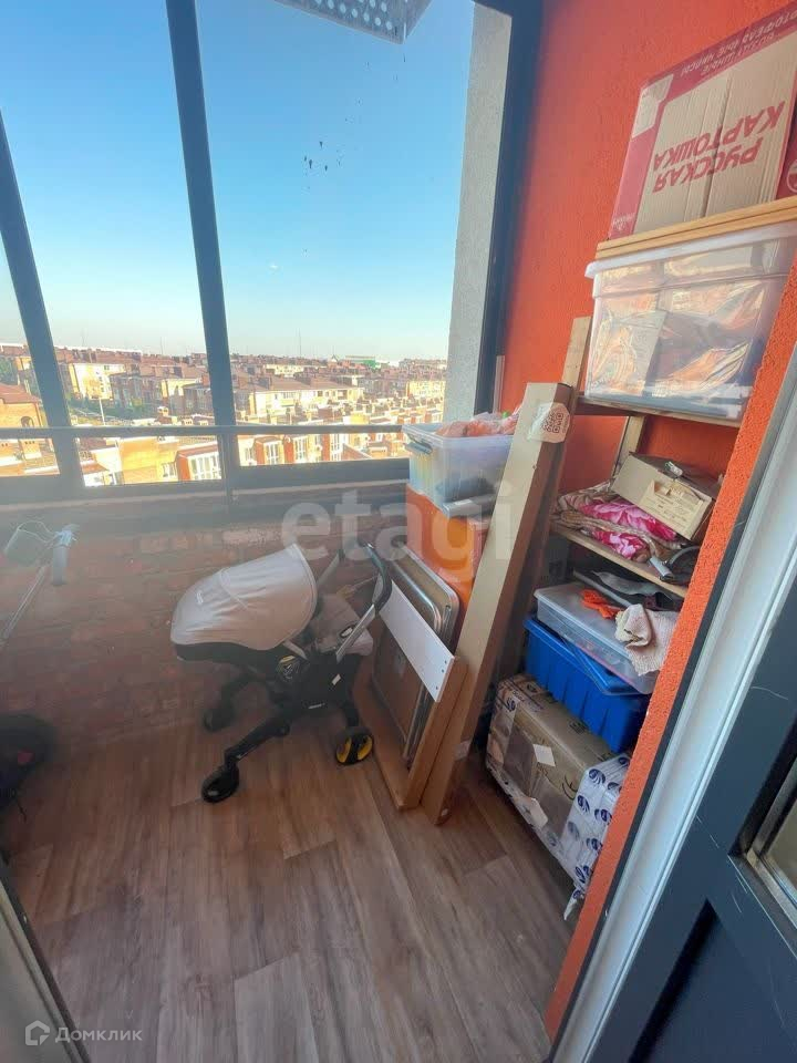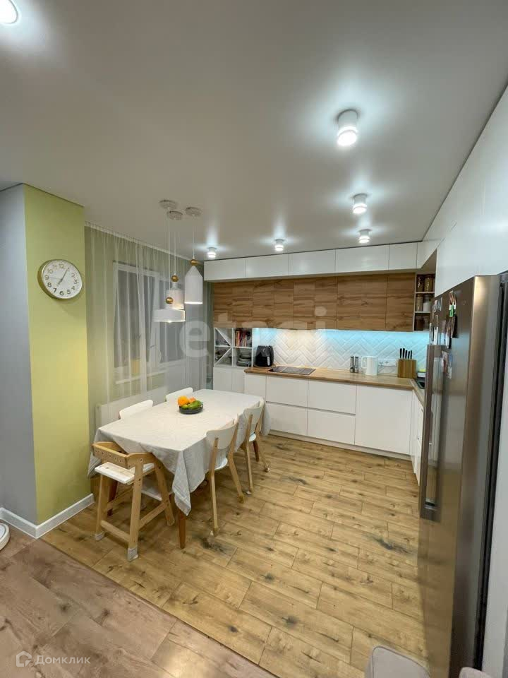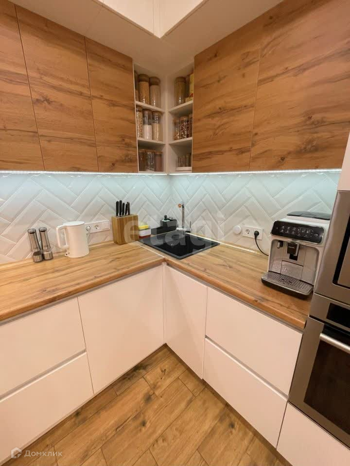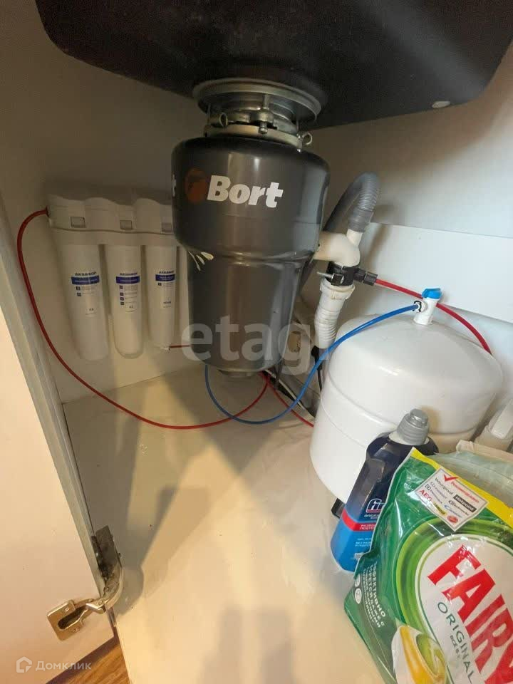 На кухне установлен измельчитель отходов Bort (пищевые отходы можно скидывать в раковину) и фильтр для воды Аквафор. Фартук из плитки, подсветка рабочей зоны. Техника: холодильник Beko BlueLight GN162320X с генератором льда и подачей холодой воды, индукционная варочная панель Electrolux IPE 6453 KF, электрический духовой шкаф Hotpoint-Ariston 7OFI4 851 SH IX HA, встраиваемая микроволновая печь Samsung FW77SUT, кухонная вытяжка Electrolux LFG 9525 S, посудомоечная машина 60 см Zigmund Shtain DW 129.6009X. Лампы над столом можно включать отдельно, что создаёт вечерами уютную обстановку. Умный регулятор пола, который синхронизируется с Алисой. На полу балкона уложена плитка, есть стеллаж для хранений вещей.
