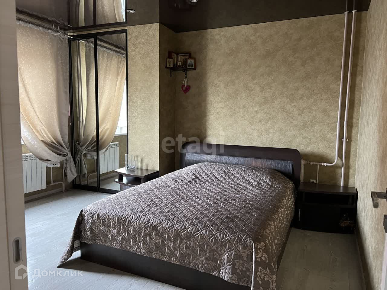 В спальнях мебель фирмы Лазурит, кровать с подъёмным механизмом и матрасами из Икеи. В спальне встроенный шкаф-купе с зеркалами.