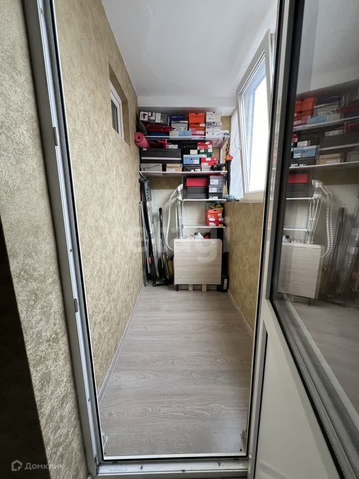 На одном балконе есть стеллаж для хранений вещей.