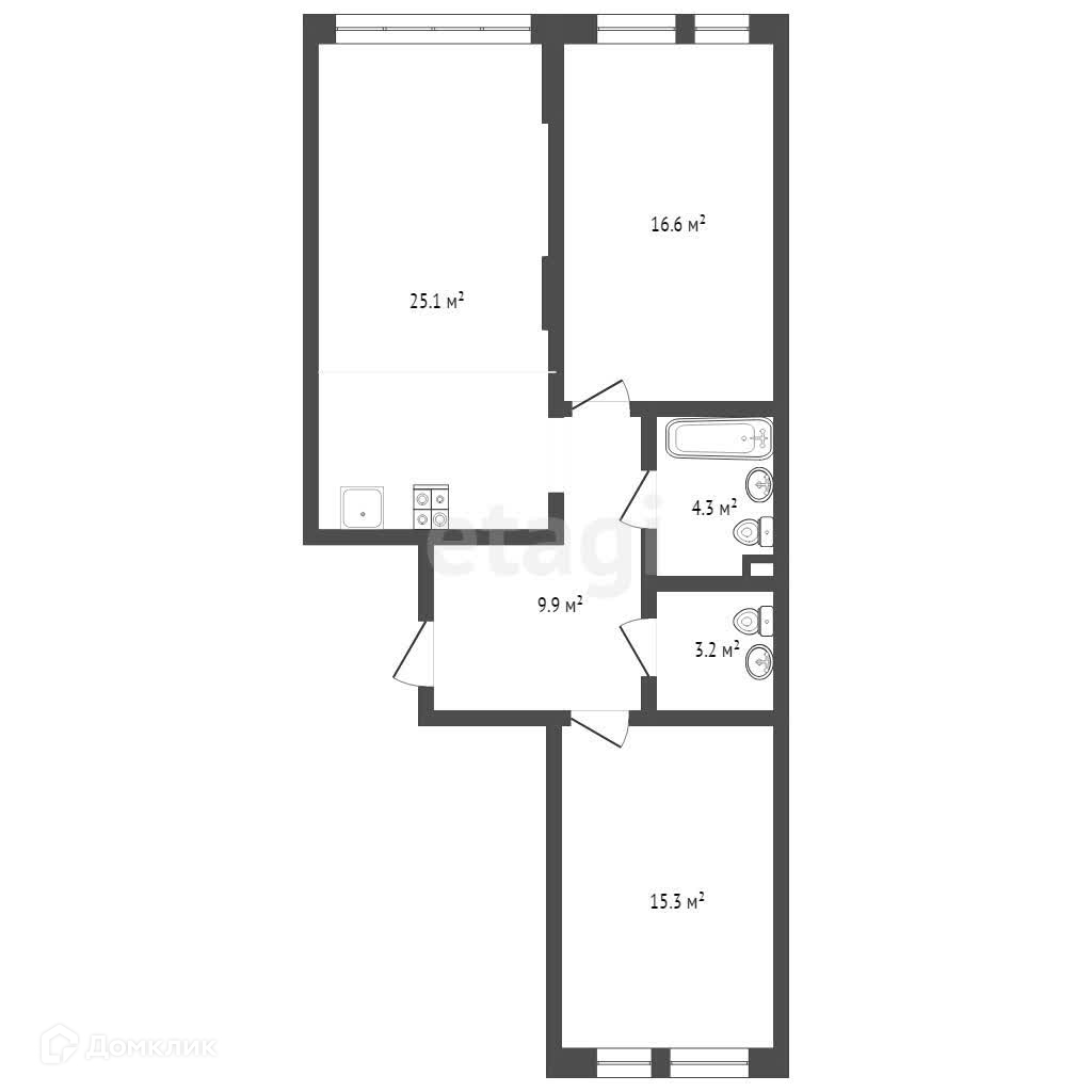 Большая кухня-гостиная, две спальни, раздельный санузел, две утепленные лоджии.