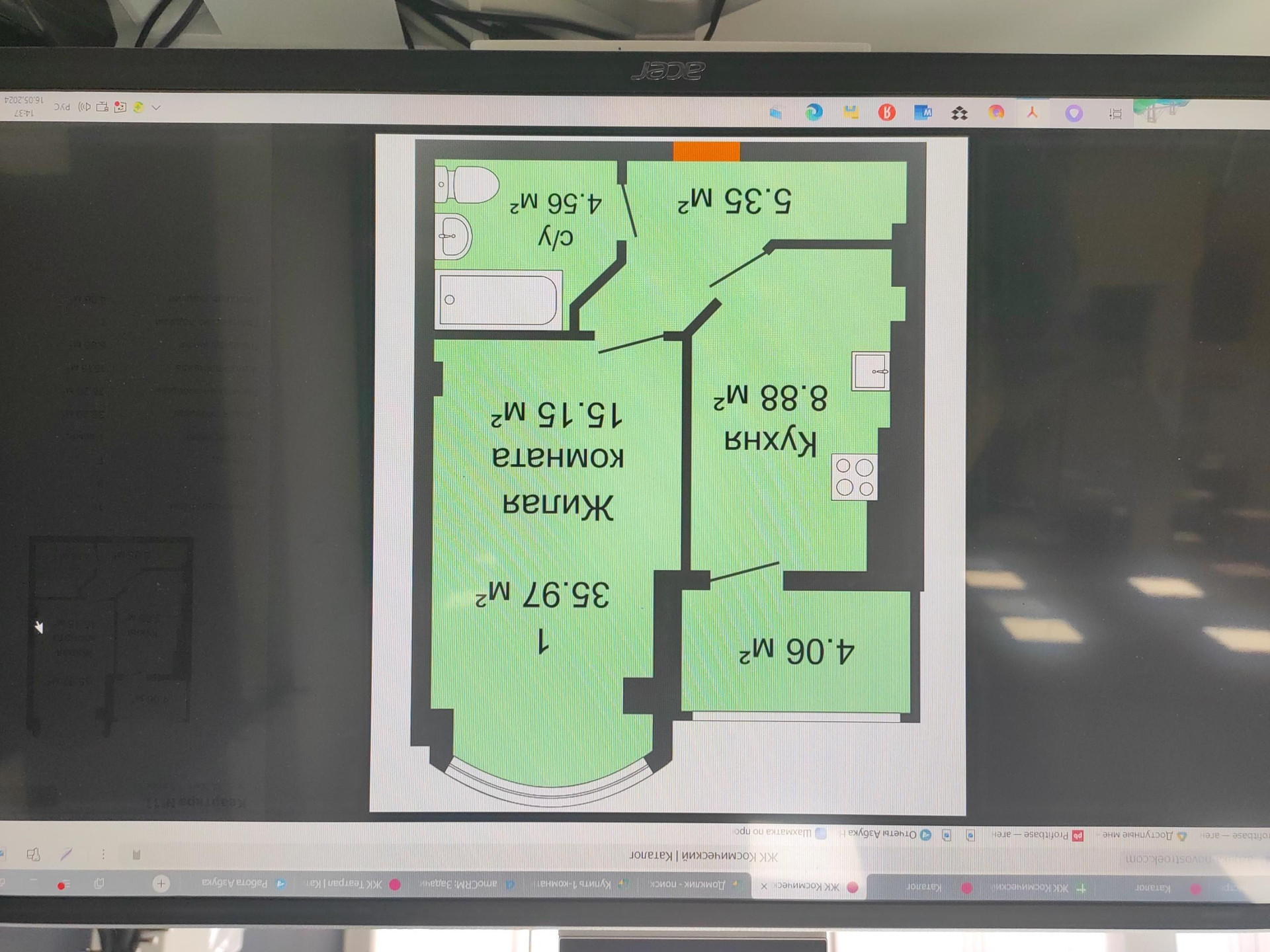 Общая площадь 36.2 м2