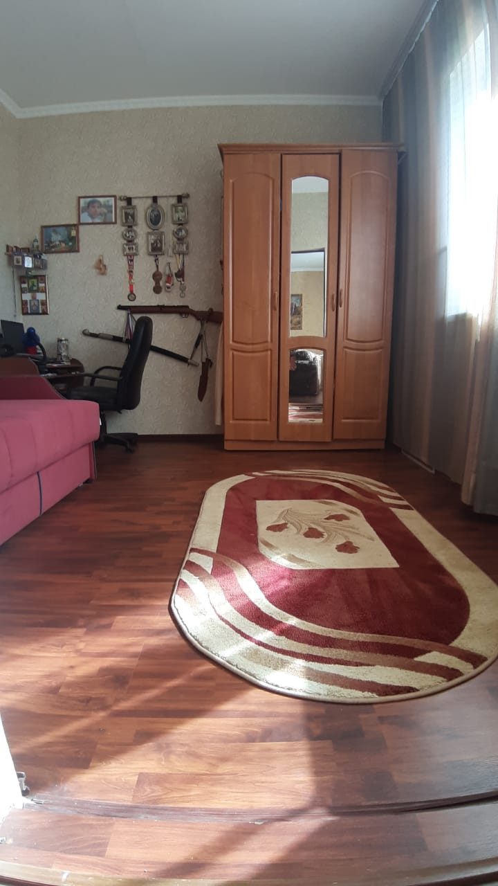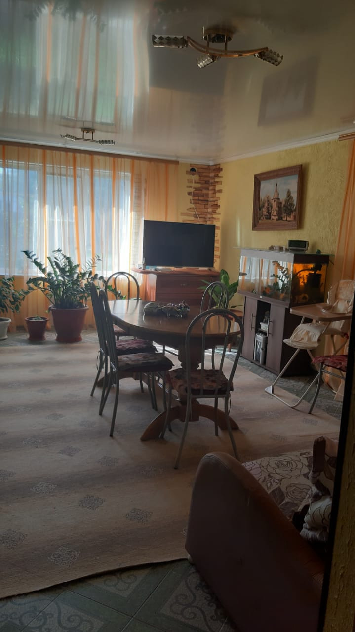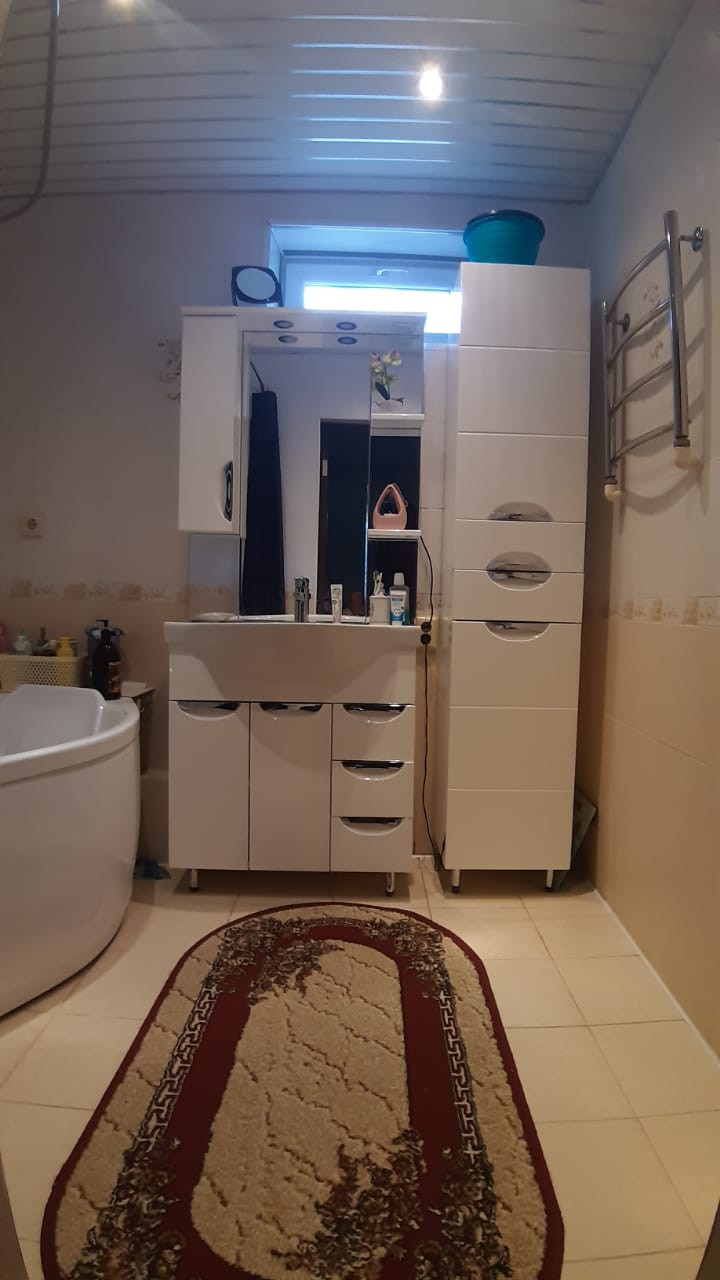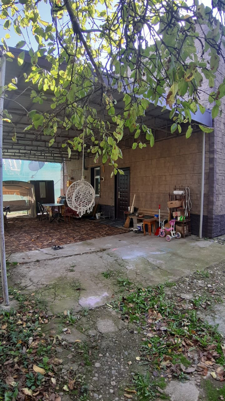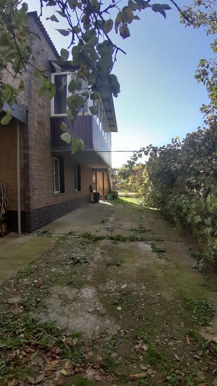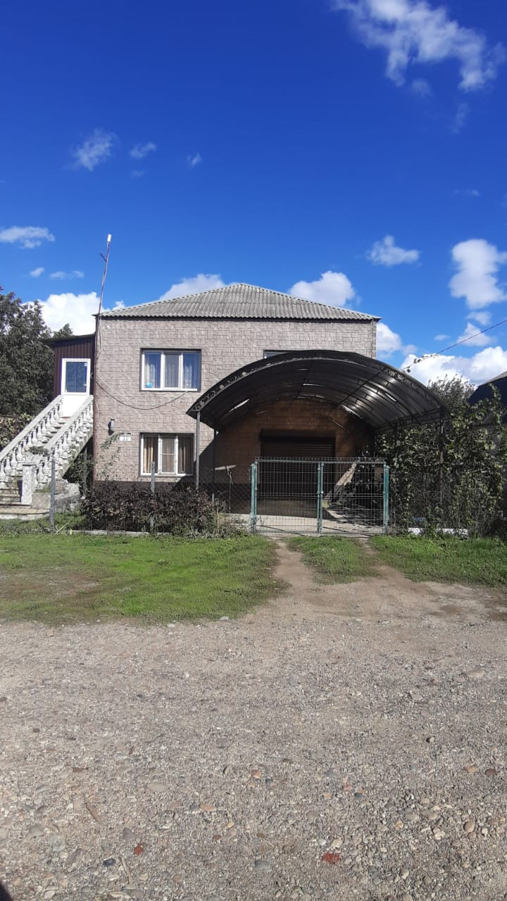 Дом расположен в тихом и спокойном месте. Соседи дружелюбные. Двух этажный  дом отапливается природным газом, все коммуникации подключены есть своя скважина.На первом этаже расположен гараж, кухня, санузел, на втором этаже 3 спальни и большой зал. На территории участка есть двух этажная баня. Так же есть плодовые деревья ( яблоко, груша, слива, алыча, черешня, вишня и виноградники) большой ухоженный огород.