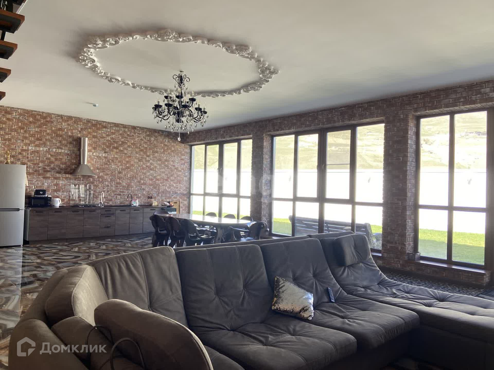 На первом большая гостиная