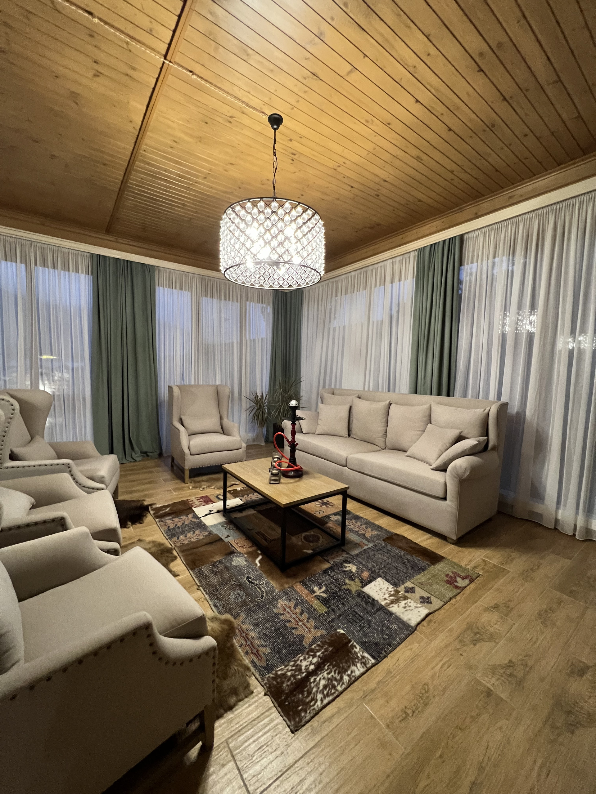 Со всей территории дома открывается прекрасный вид на горы. Коттедж премиум класса FiagDom место силы. Он идеально подходит для компаний до 9 человек, с целью проведения обучающих семинаров, тренингов, йога- и фитнес- туров, а также иных подобных мероприятий.
