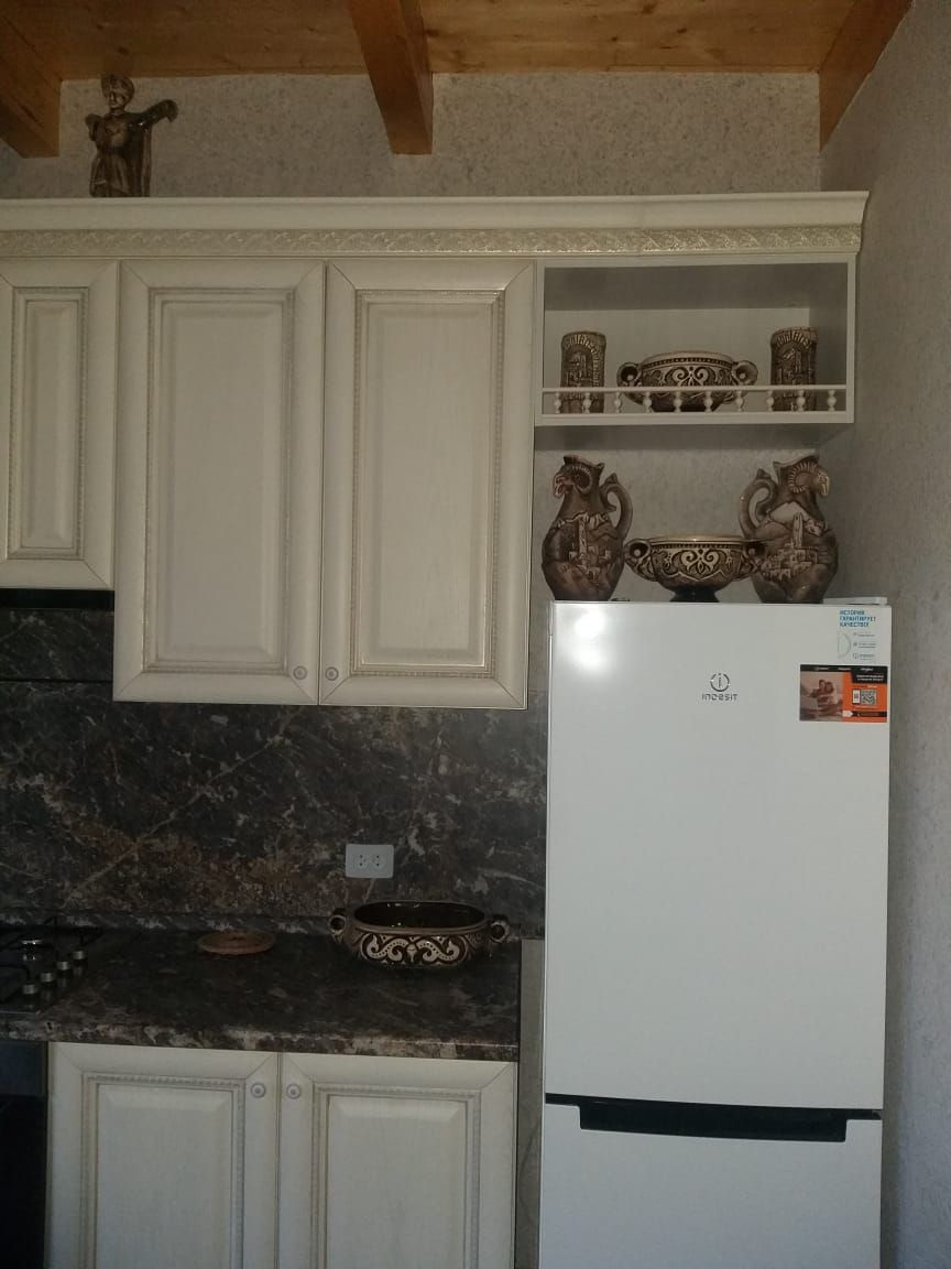-кухонная зона (есть вся необходимая посуда,микроволновка,холодильник,чайник, газовая плита с духовой печью);