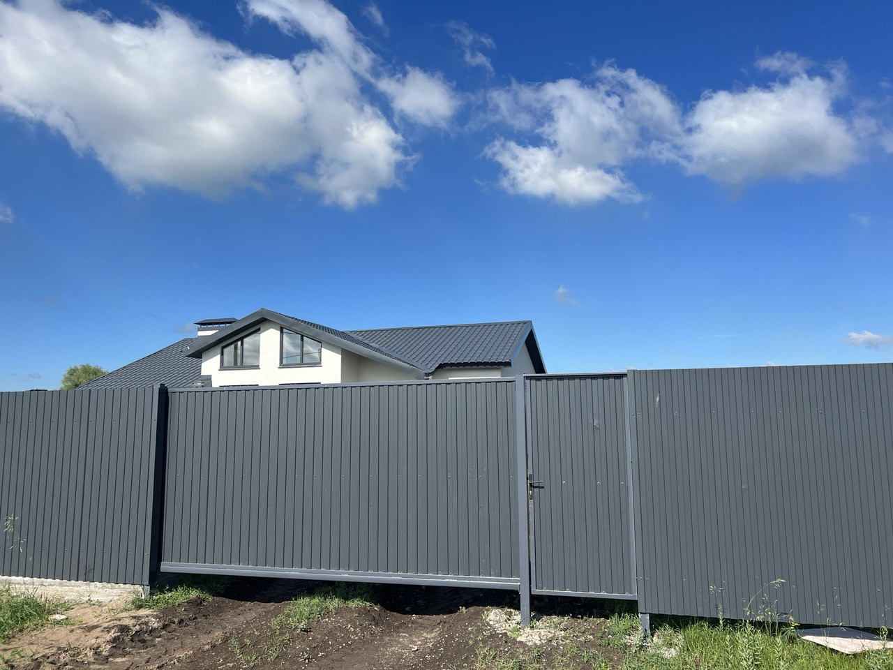 ✅ Участок огорожен забором из профилированного листа высотой 2м. Цвет графит.