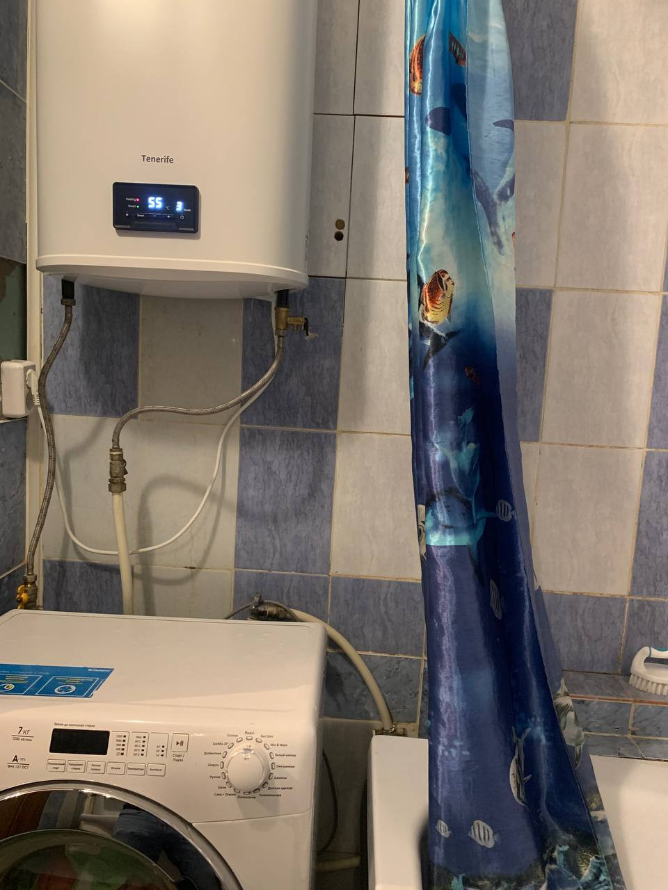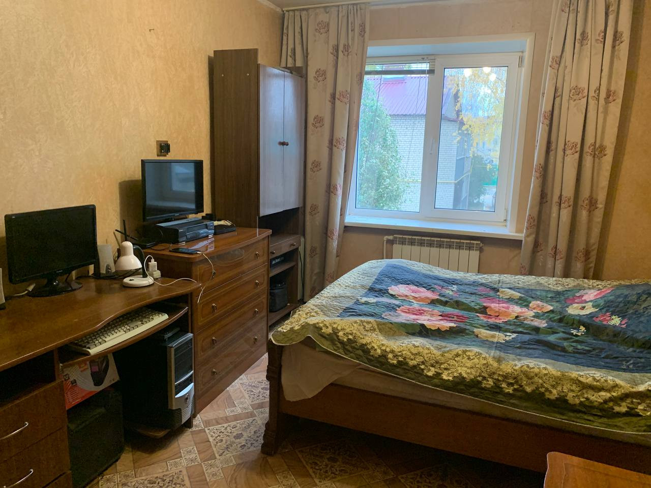Ремонт в квартире простой, но подходящий для проживания. В квартире остается вся мебель (кровать, диван, шкафы, кухонный гарнитур и прочее) и техника (новые хорошие водонагреватель и стиральная машинка, холодильник и компьютер). Отопление общее, все счетчики есть (вода, газ, свет), платежи небольшие. Есть парковочные места во дворе, а также всегда свободная парковка с торца дома.