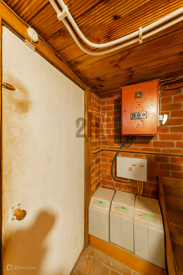 Дом под охраной. Вводное напряжение 380 вольт. Три фазы стабилизированы, по 4,5 кВт. По периметру дома проведены крытые бетонированные сливы для отсечки воды. Со стороны леса также вдоль забора бетонный бордюр от воды.