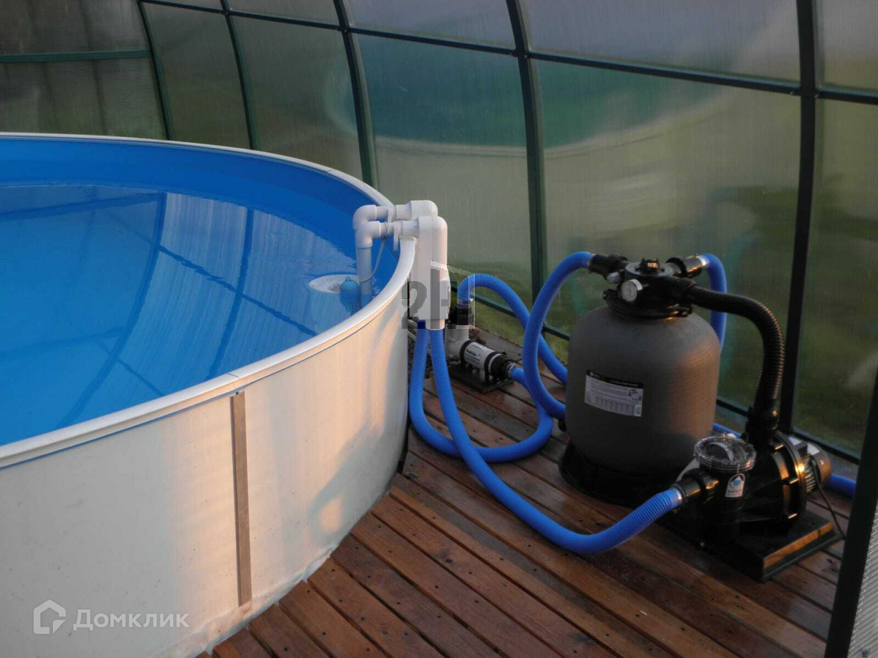 Бассейн 3,5*3,5м, крытый, летний, вкопанный, с системой очистки и нагревом.