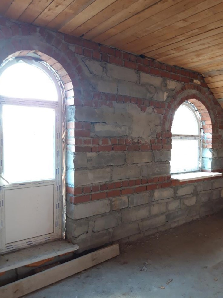 Материал: газобетон + кирпич + штукатурка, плиты перекрытия. Внутри отделка черновая.