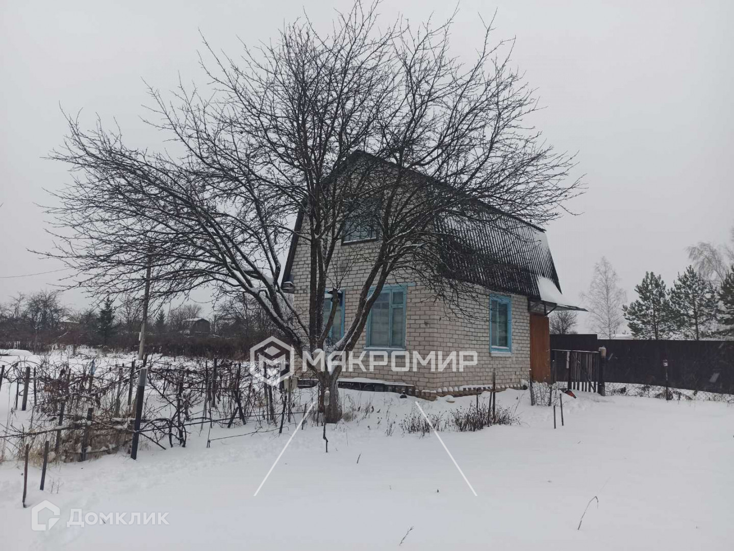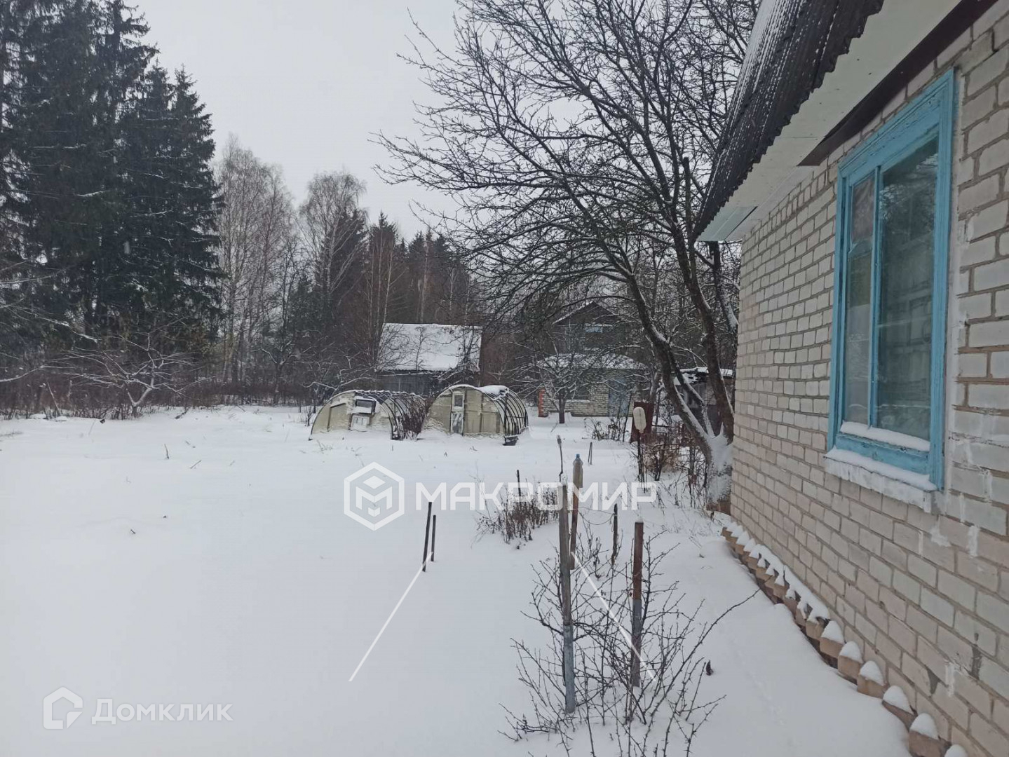 Дом расположен на ровном участке правильной формы общей площадью 650 м2. Огорожен забором из сетки рабицы. На участке имеются плодово-ягодные насаждения: 3 грушы, 3 яблони, молодой виноград, слива, крыжовник и смородина. Также на участке расположены две теплицы и сарай .Участок находится у леса.
