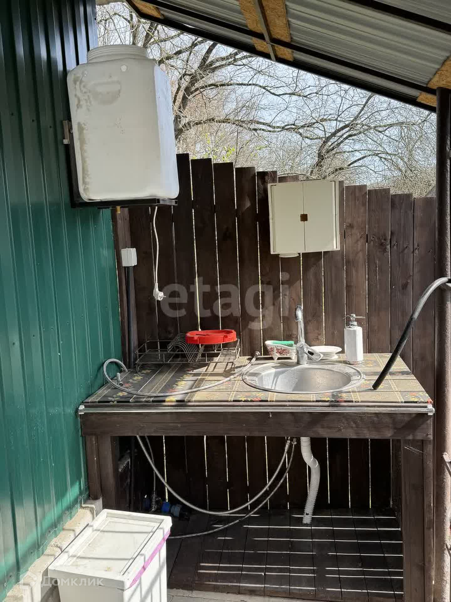 На участке есть вода (своя скважина), резервуары для воды, душ (установлен проточный водонагреватель), туалет, умывальник.