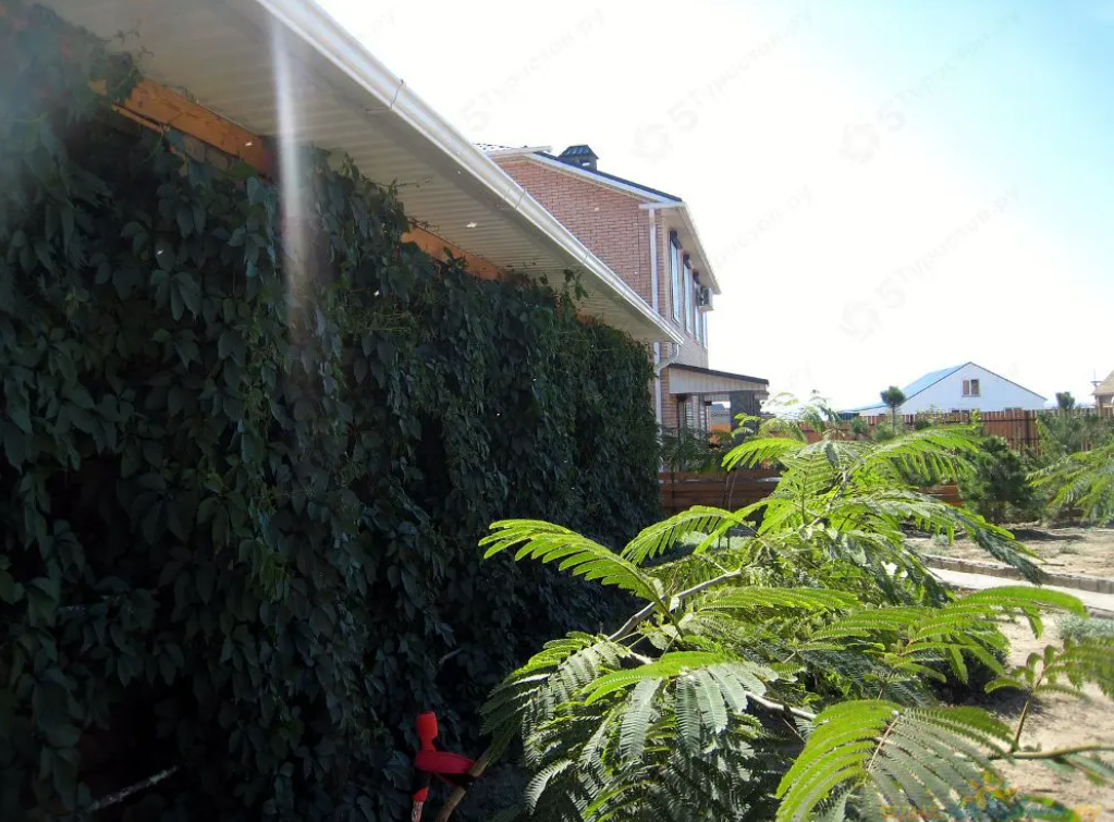 Окна во двор и на море на горизонте. Площадка под парковку нескольких автомобилей. Закрытый двор. Зона барбекю. Двор имеет два дома официально разделенные на квартиры. Очень спокойно и приватно. Соседи с Севера, с Москвы, с Питера. Кто остается и проживает постоянно - смотрят по доброму и по соседски за всем двором и хозяйством.
