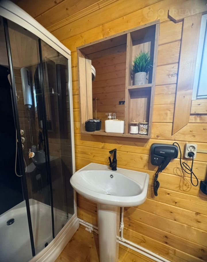 В ванной комнате: бойлер ,фен,утюг, гладильная доска, душевая кабина.