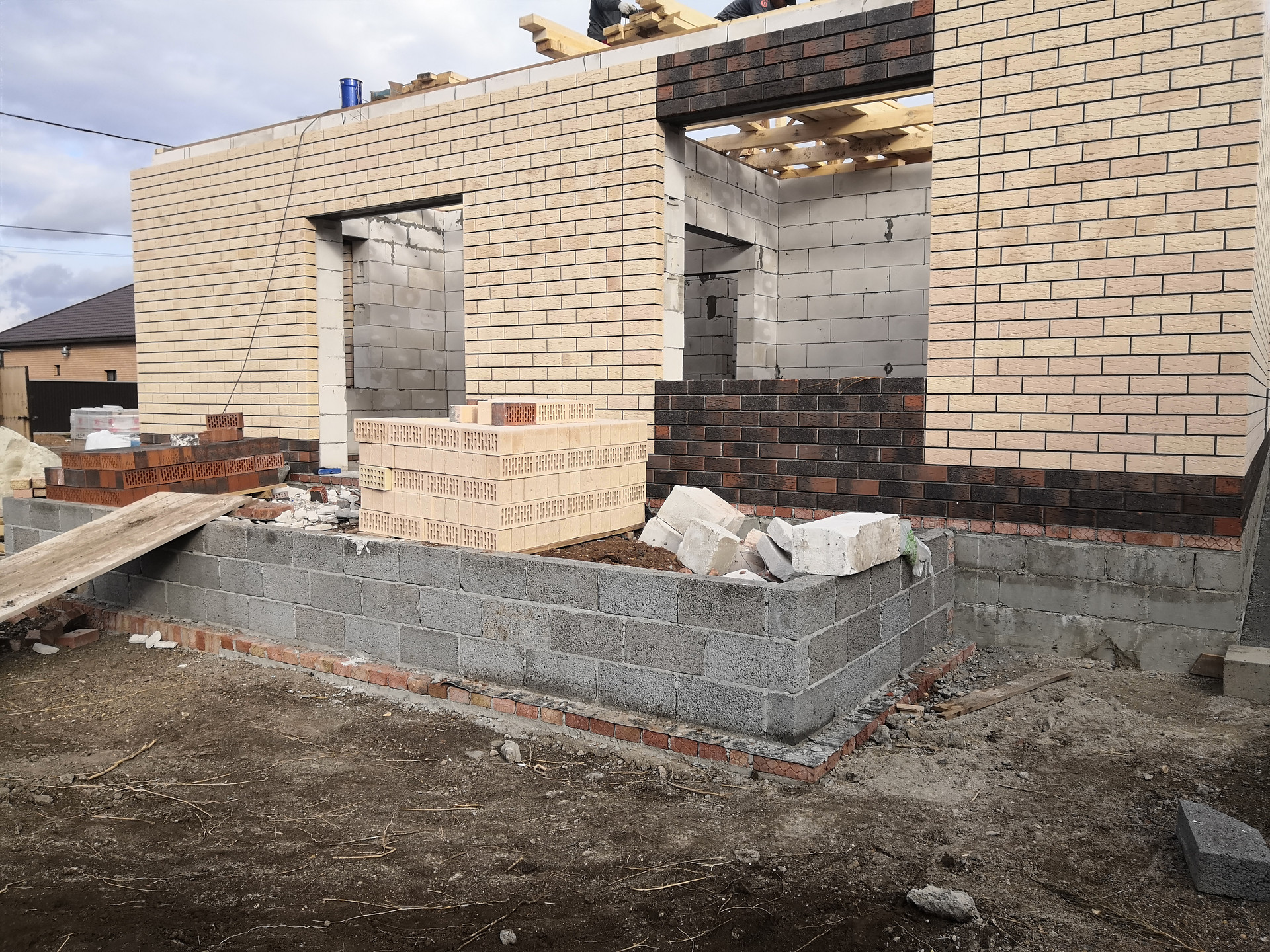 Дом построен: свайно-ленточный фундамент, стены из газоблоков, облицовка –кирпич, крыша – металлочерепица + утеплитель, окна энергосберегающие с ламинацией, тёплые полы по всему дому, установлены радиаторы отопления, качественная входная дверь. Забор с трех сторон по периметру участка.