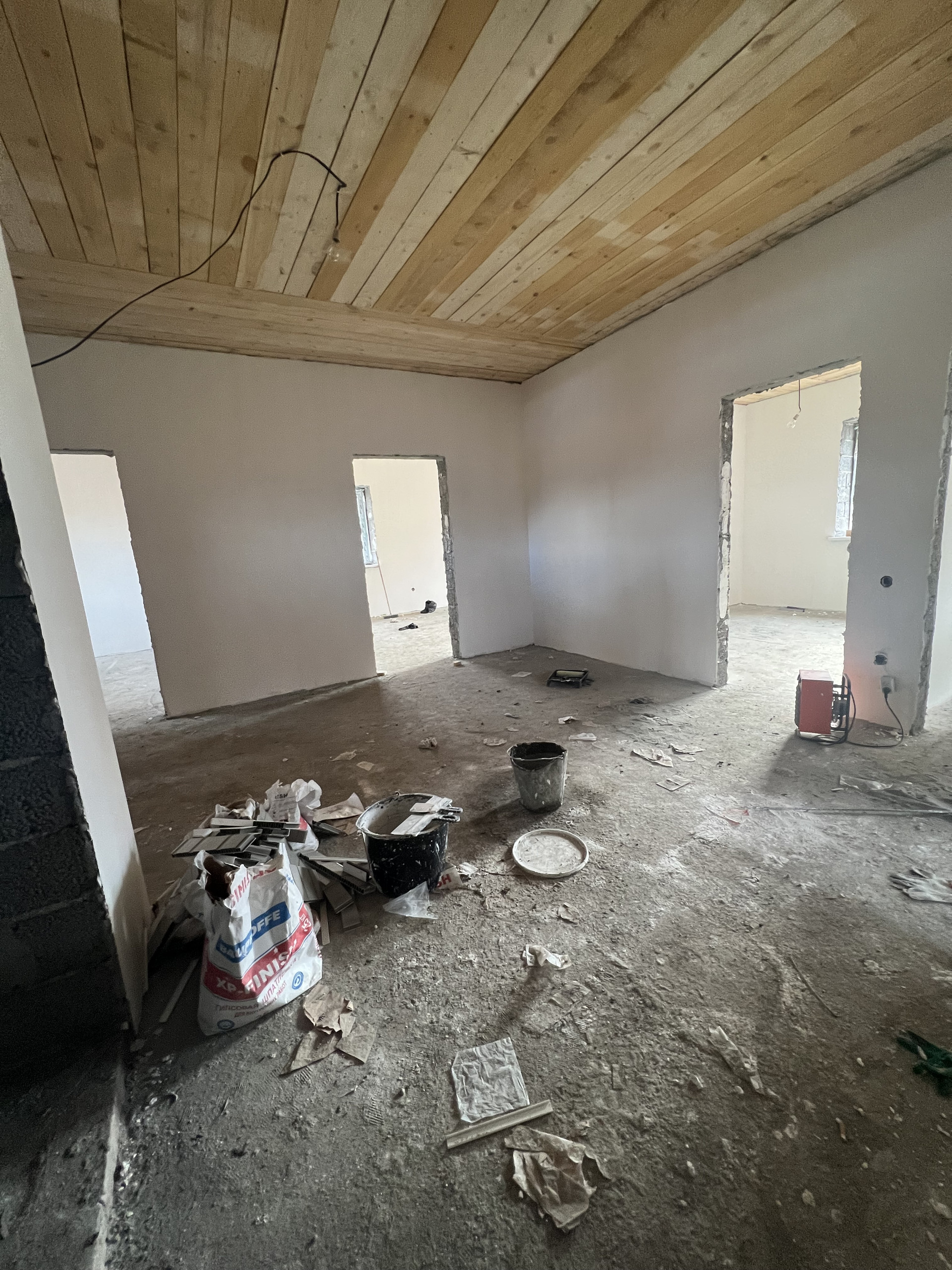 В доме сделана качественная предчистовая отделка по всем нормам строительства, электропривод гаражных ворот, окна висла.