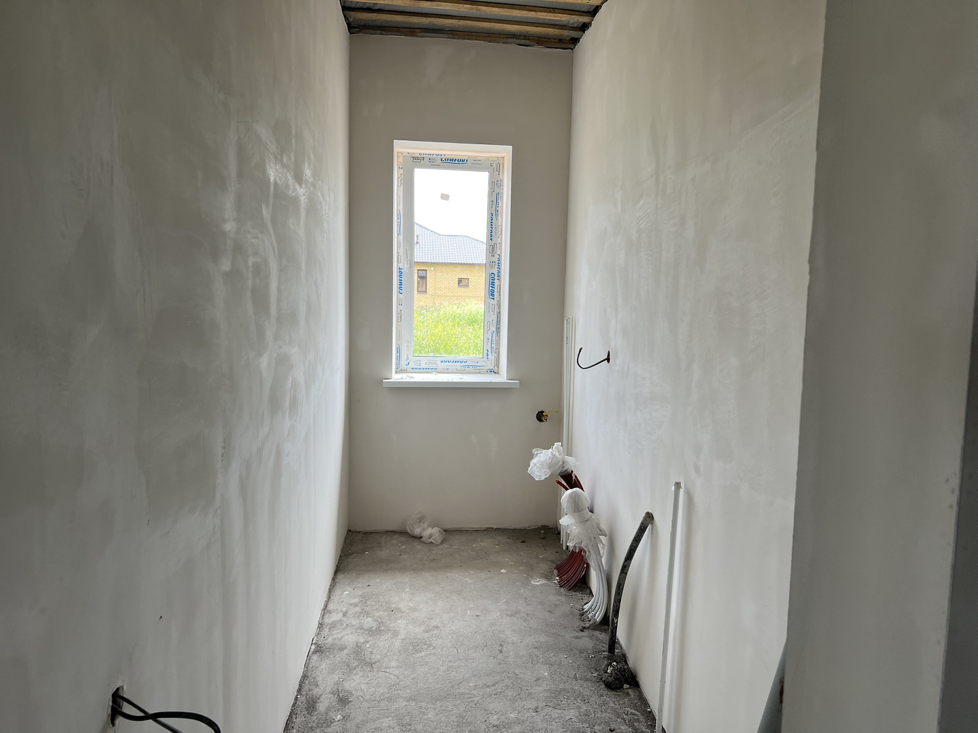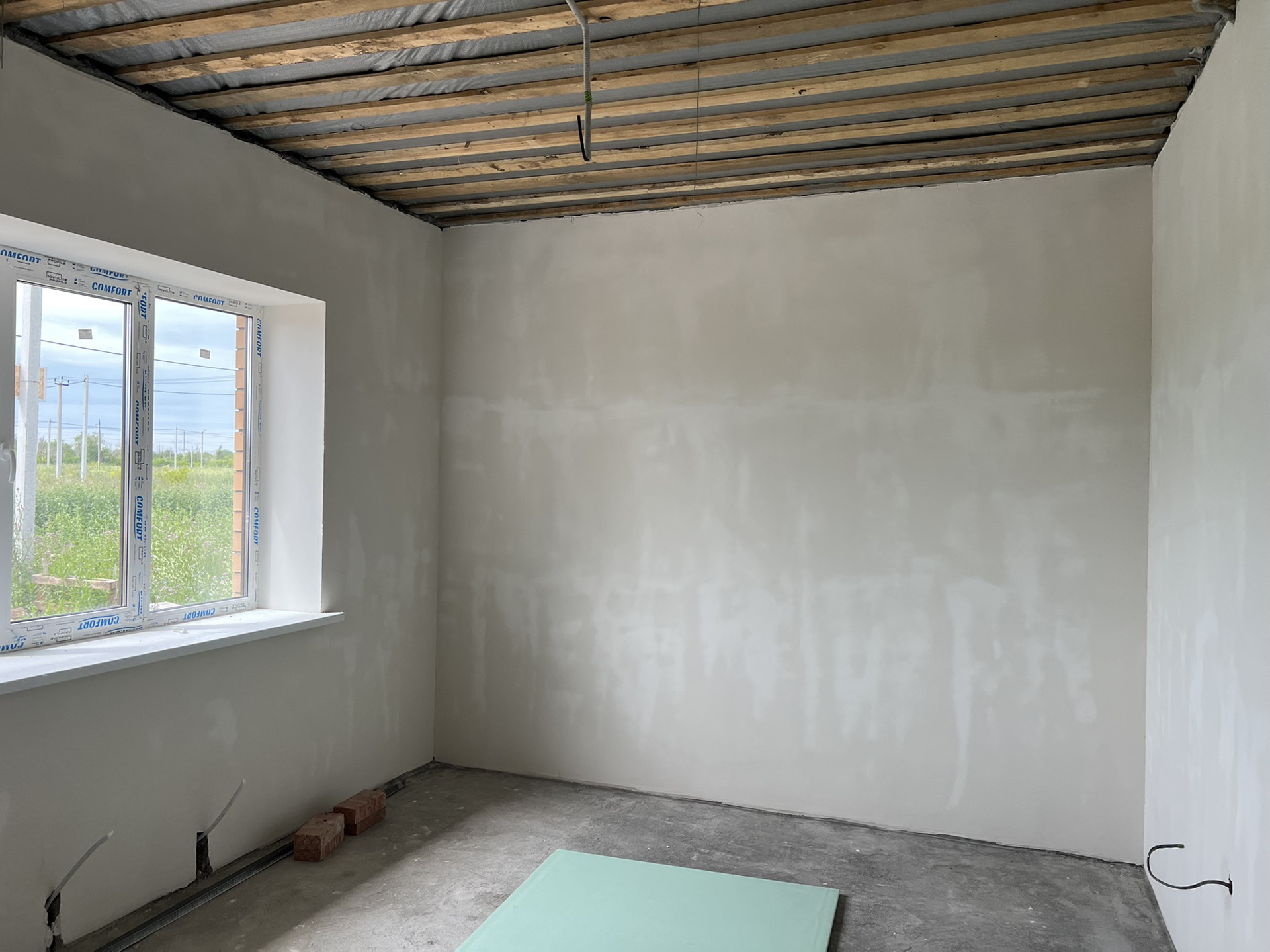 Стены: еврокерамзитоблок 30 см + утеплитель 10 см + облицовочный кирпич (Белебей). Отшпатлеваны под обои или покраску.