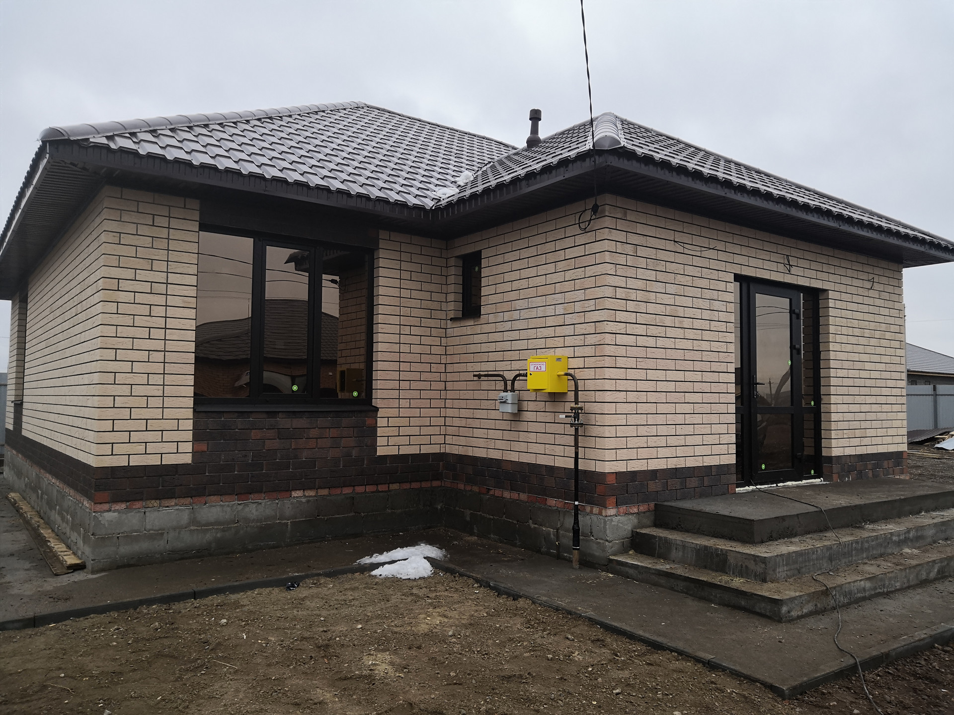 Дом построен: свайно-ленточный фундамент, стены из газоблоков, облицовка –кирпич, крыша – металлочерепица + утеплитель, окна энергосберегающие с ламинацией, тёплые полы по всему дому, установлены радиаторы отопления, качественная входная дверь. Забор с трех сторон по периметру участка.