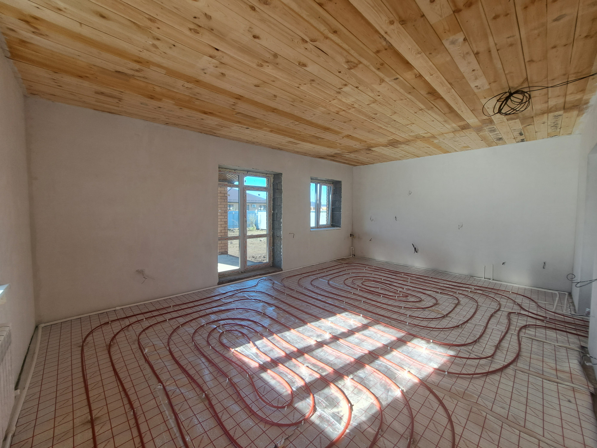 - Отделка: стены оштукатурены и ошпаклеваны под обои , пол – полусухая стяжка, установлена входная дверь с терморазрывом, в доме полностью разведена электропроводка.