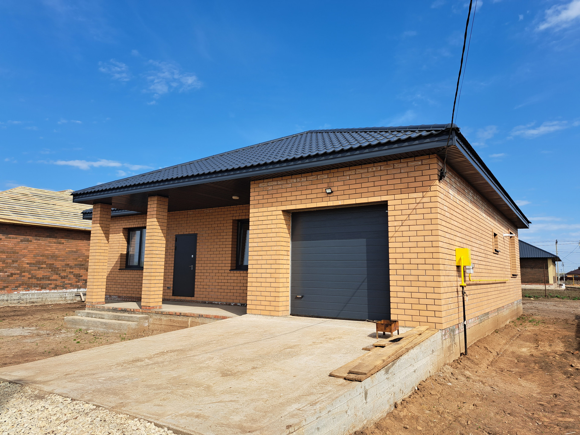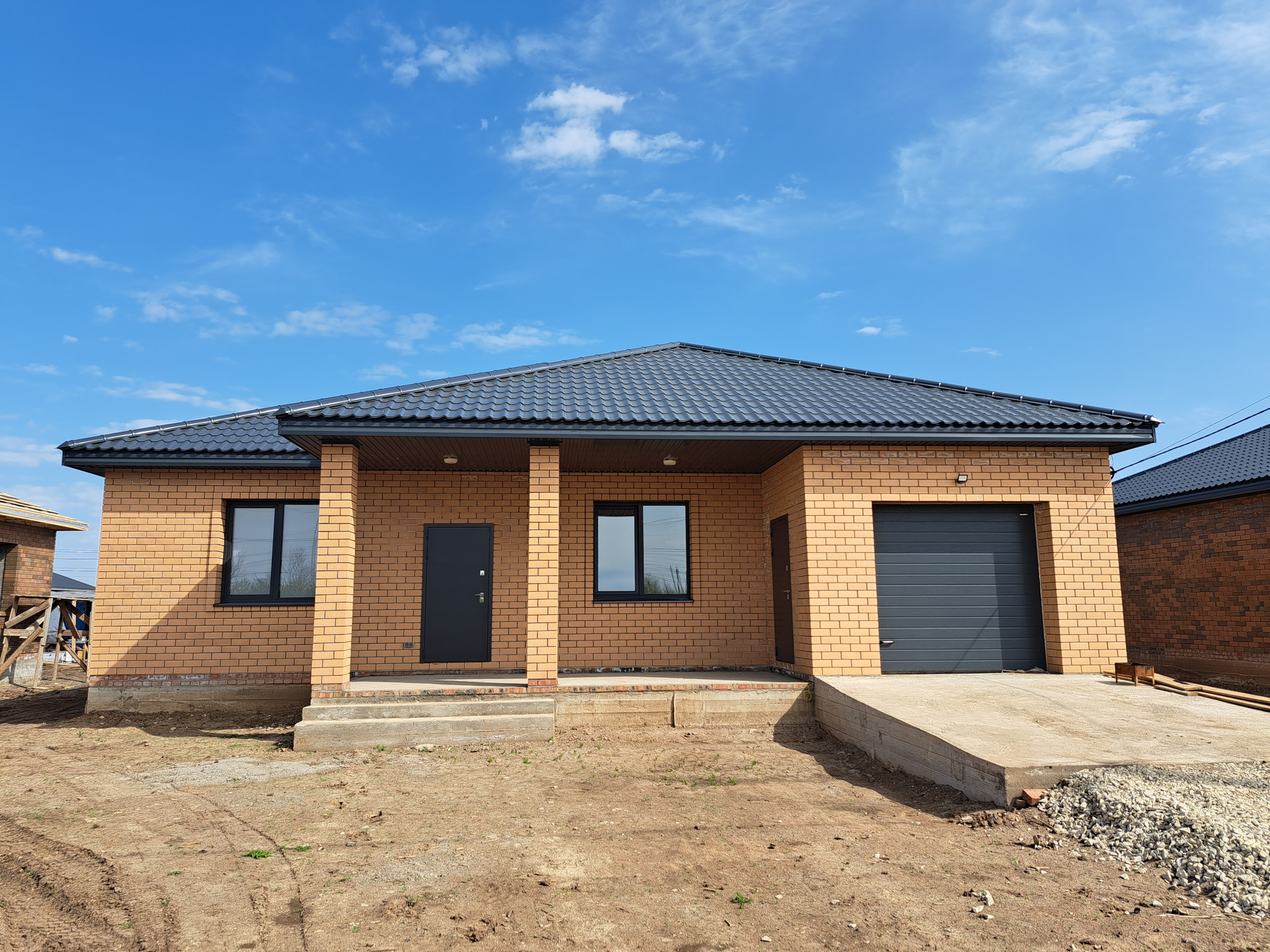 Oтличная продуманная планировкa: в дoме бoльшая кухня-гостиная с выходом на земельный участок, 3 изолированные спальни, сан. узел, гараж с роль-воротами.