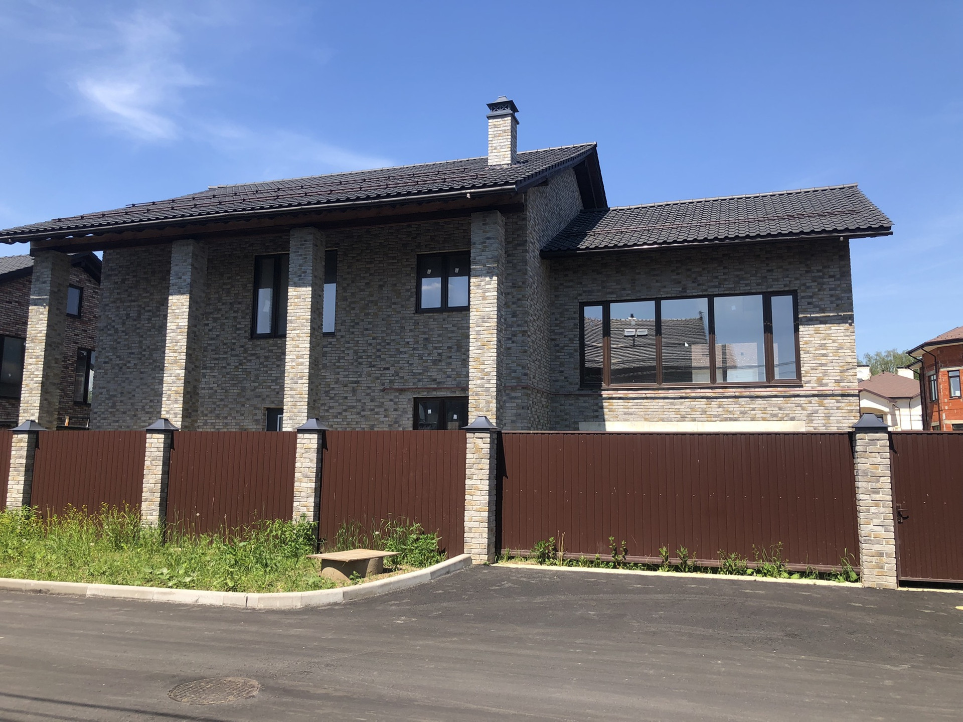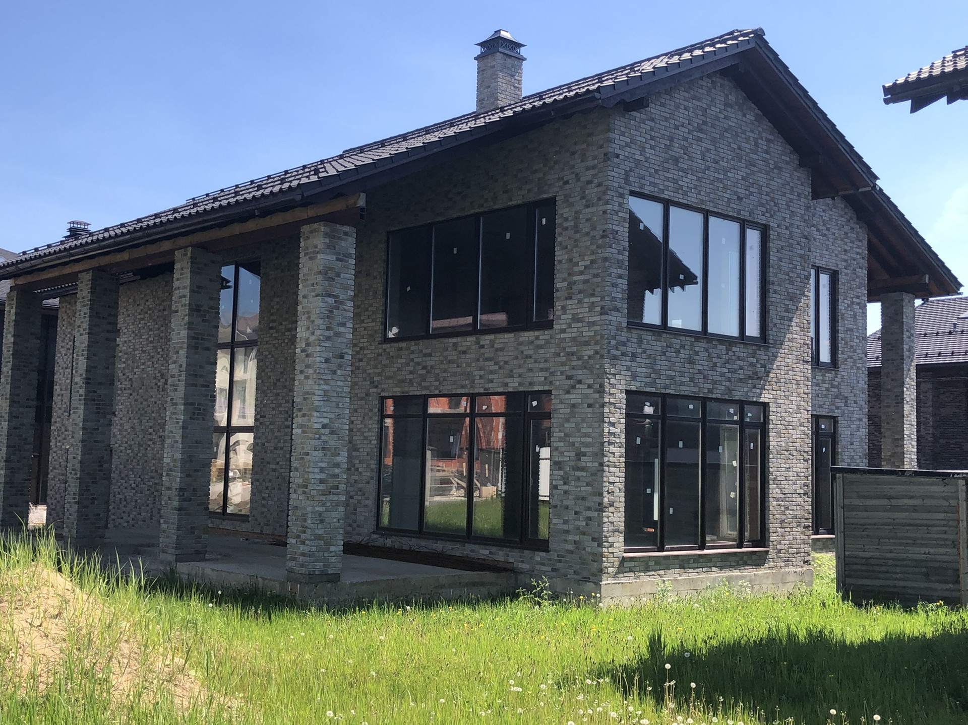 Фундамент свайно-монолитный. Каркас и перекрытия монолитные. Стены выполнены из экологичного клинкерного кирпича Feldhaus Klinker, на крыше смонтирована немецкая клинкерная черепица. Остекление Дома выполнено максимально для свето-поступления во все помещения (не маленькие бойницы соседних домов из 90-х).