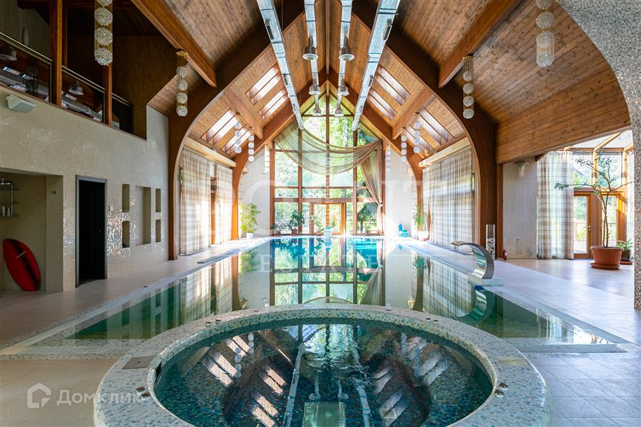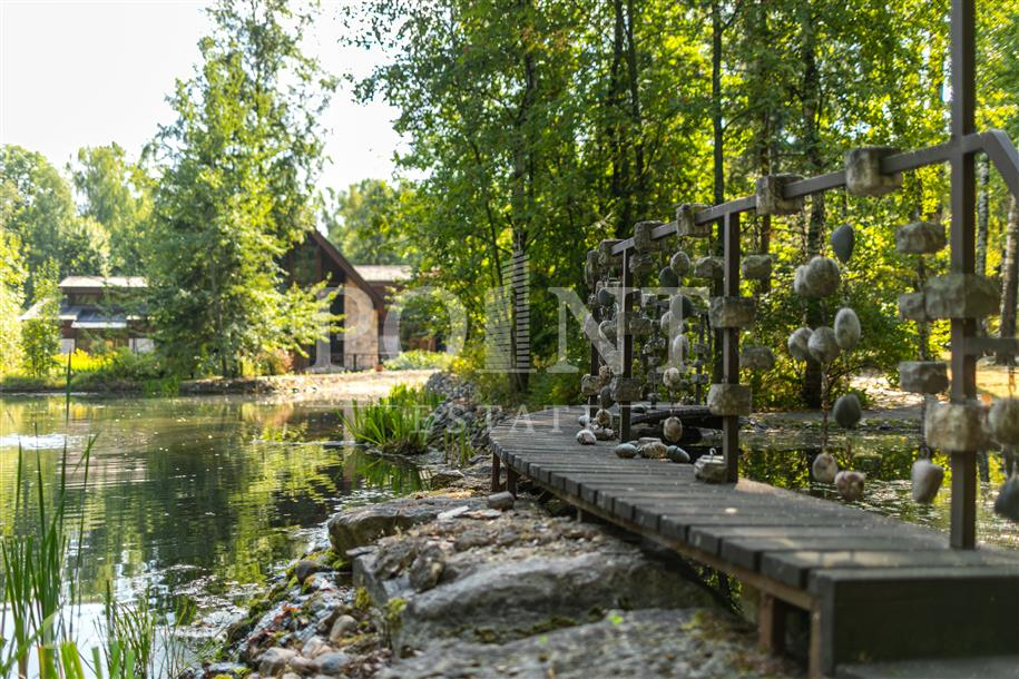 Лот: 83707.   Предлагается уникальная загородная резиденция площадью 1320,6 кв.м, расположенная на великолепном лесном участке 4,09 Га в охраняемом поселке в непосредственной близости от столицы. Внутренняя отделка выполнена с использованием эксклюзивных материалов и комплектующих с применением ценных пород дерева, мрамора, натурального камня. Установлены дизайнерский свет, современные инженерные системы, выполненная на заказ мебель. Здесь есть все необходимое для комфортного проживания: просторная двусветная гостиную с камином, кинотеатр, винный погреб, 6 спален с собственными ванными и гардеробными, СПА-зона с потрясающим 12-метровым бассейном с чистейшим горным воздухом, хамамом, сауной с зоной отдыха и тренажерным залом. Резиденция имеет собственную подъездную дорогу. Участок состоит из благоустроенной территории с ландшафтным дизайном и каскадом рыбных озер и природного леса с велосипедными дорожками. Отдельно построен гараж на шесть машиномест с квартирой для персонала и дом для проведения банкетов и домашних праздников 112,3 кв.м. Круглосуточное видеонаблюдение по периметру.