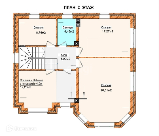 2й этаж - 3 спальни, санузел + совмещенная спальня с кабинетом