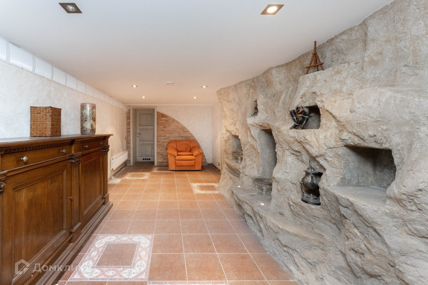 Цокольный этаж- Баня с комнатой отдыха, котельная, постирочная, с/у, душевая, ванна с гидромассажем, склад, винный погреб.