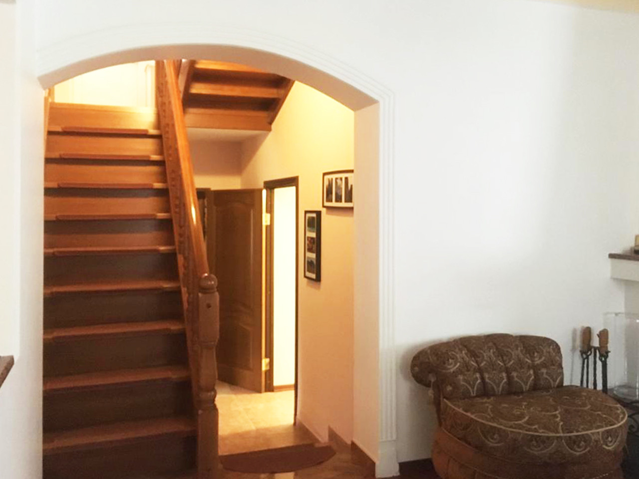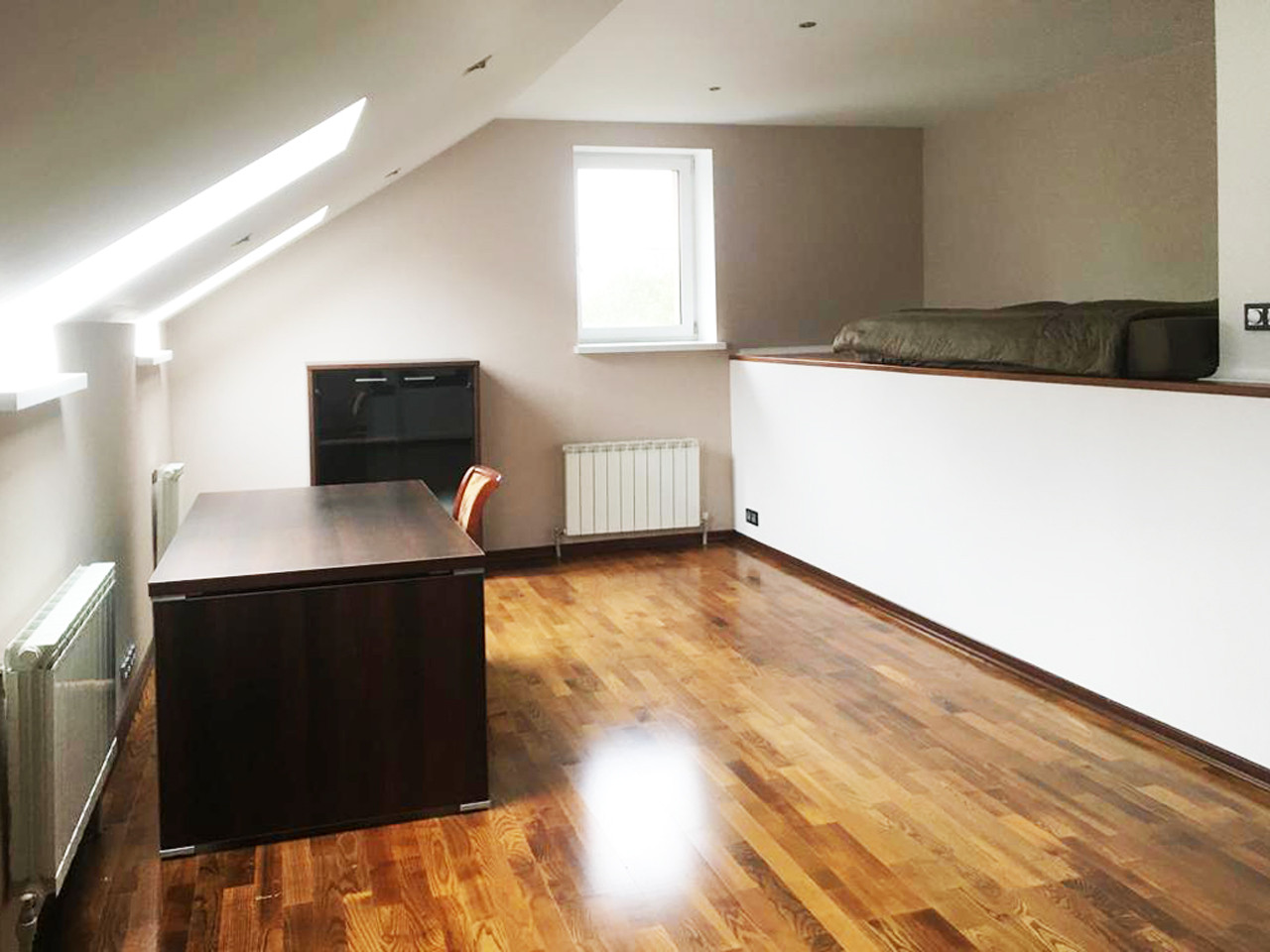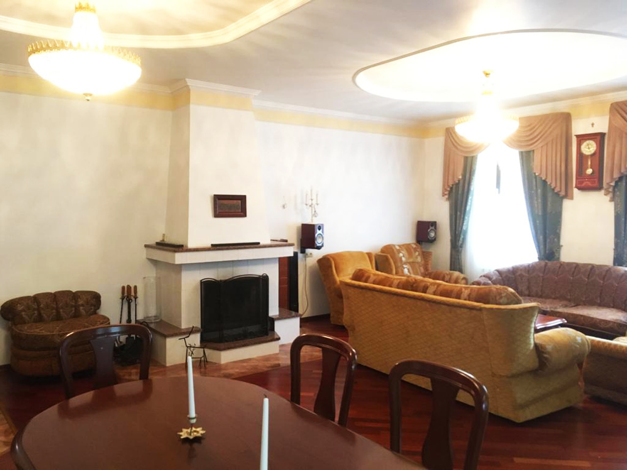 Планировка: 3 этажа, 5 уровней, 4 спальни ( одна на 1 этаже), кухня- столовая, котельная, кладовая, кабинет, комната с тренажерами, застеклённая лоджия, 2 с/узла: раздельный и совмещённый. Первый этаж: все полы с плиткой - с обогревом. На втором и третьем этаже кондиционеры. Освещение зонированное, различные варианты. Рабочий камин.