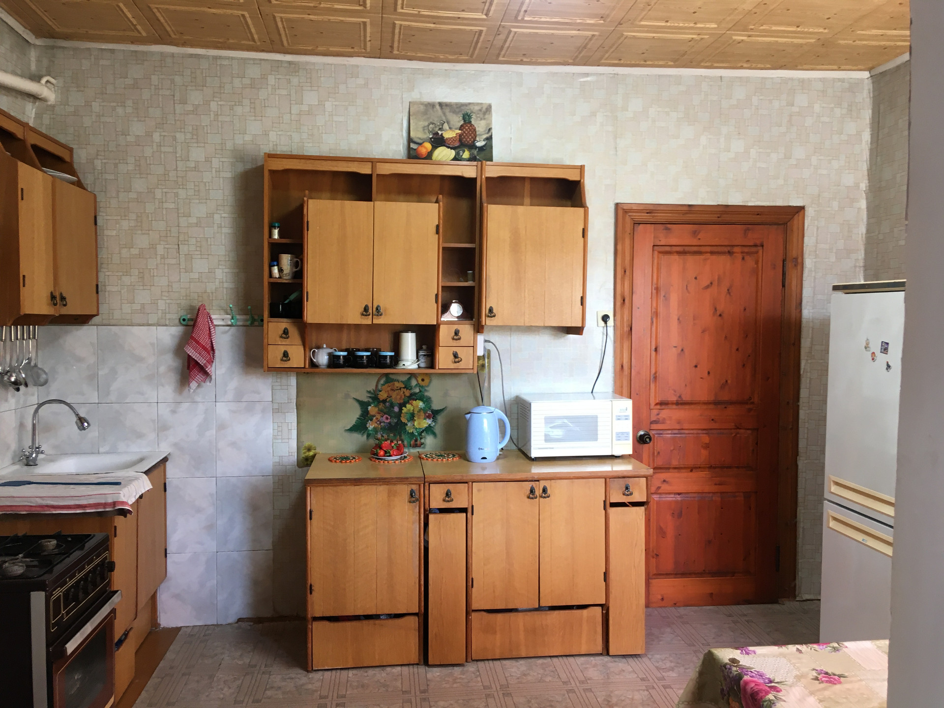 Кирпичная летняя кухня имеет жилую комнату (16м2) и кухню (10м2). В кухню заведен газ, вода и канализация (септик). Часть участка занимает сад с плодовыми деревьями и кустарниками, часть – огород с грядками. Кроме этого, в километре от дома, есть еще один обработанный земельный участок на окраине поселка площадью 15,7 сотки (под сад или огород).