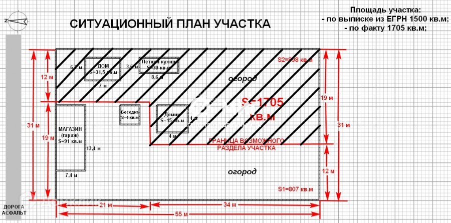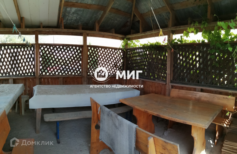 К участку подходит асфальтированная дорога. На участке также имеется крытая беседка, хозпостройки.