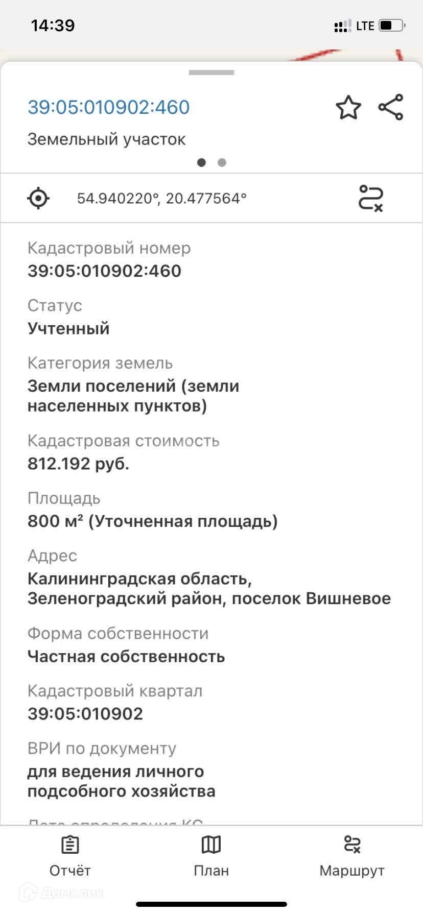 Участок по ВРИ-ЛПХ, на ИЖС меняется по заявлению в МФЦ, в п. Вишневое. Земли населённых пунктов.