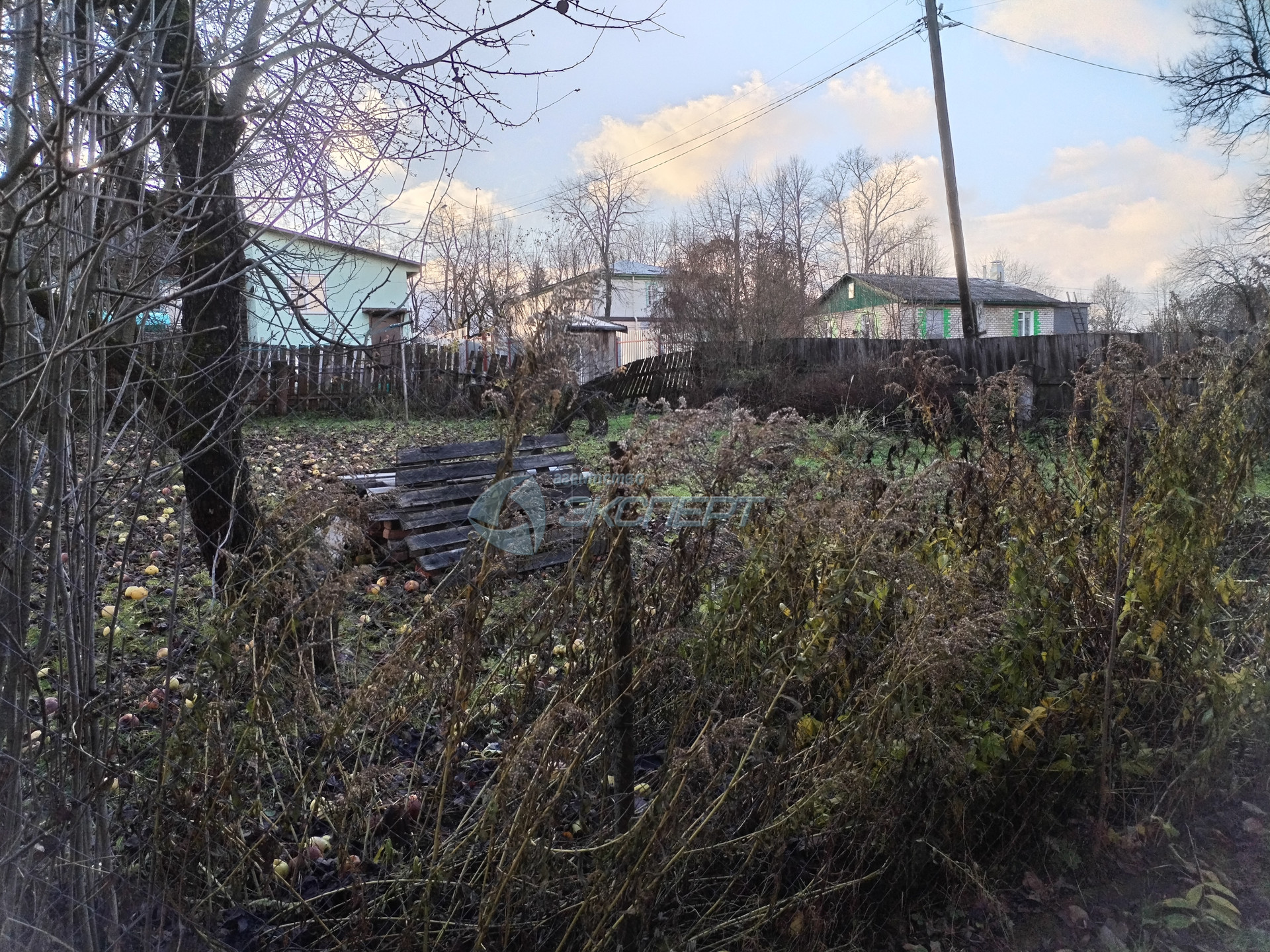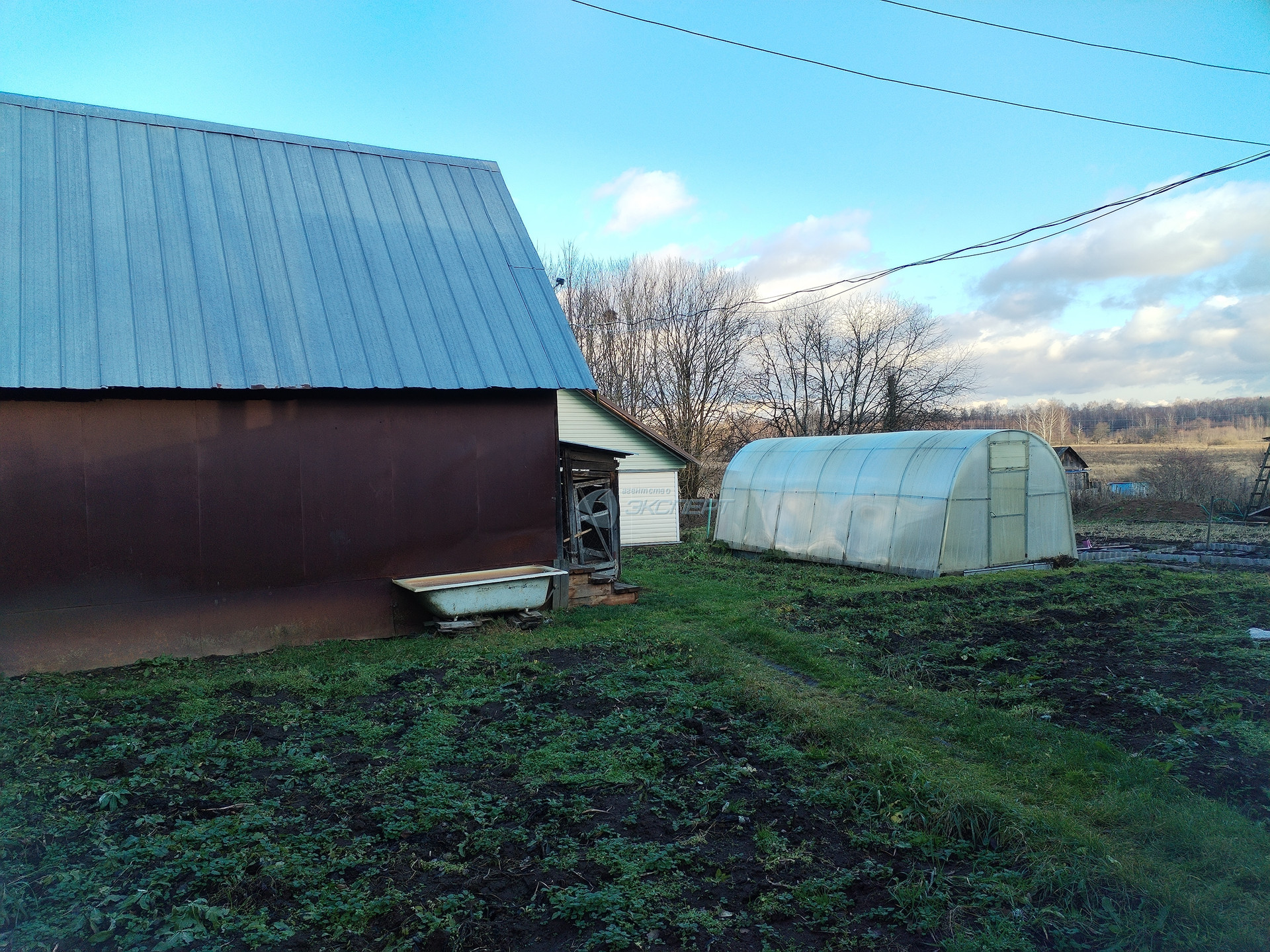 Земельный участок ровный. С одной стороны дома- сад с яблонями, с другой- огород с теплицей из поликарбоната. Площадь участка 11 соток, обработан.