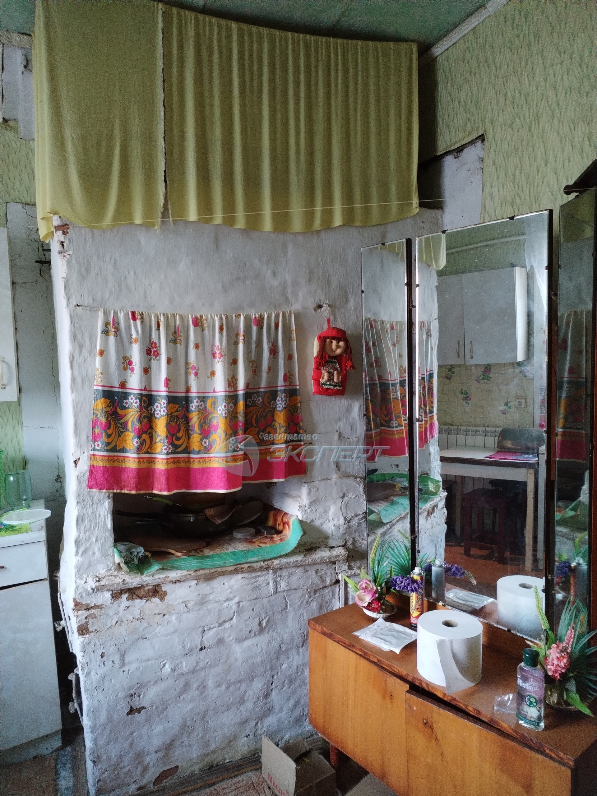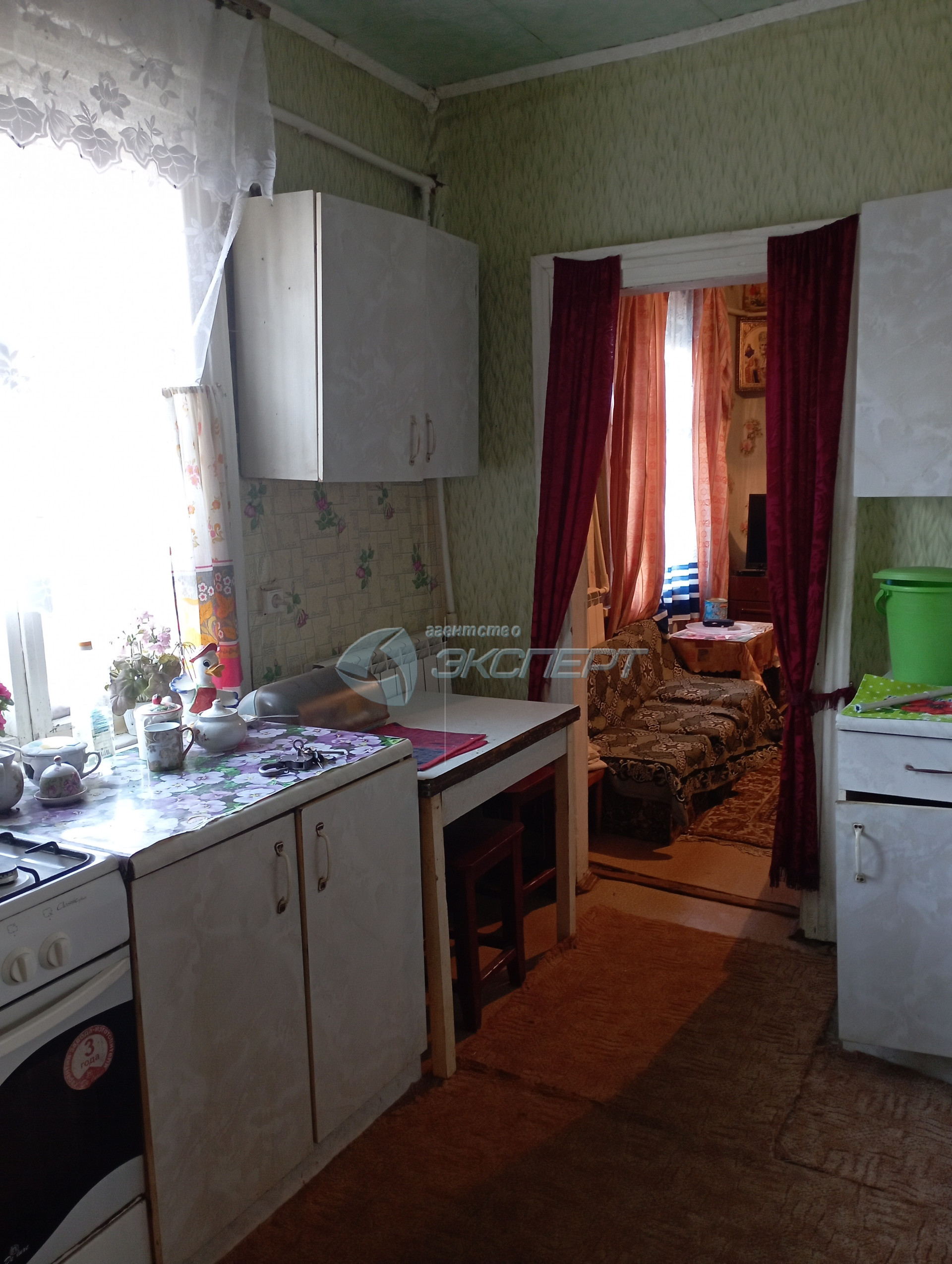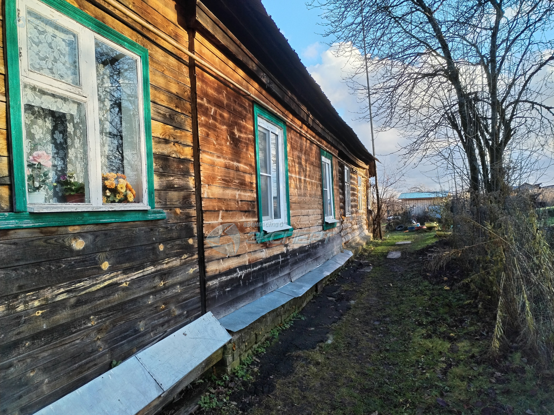 Дом, в котором расположена квартира,- одноэтажный, бревенчатый, обшит  тесом.