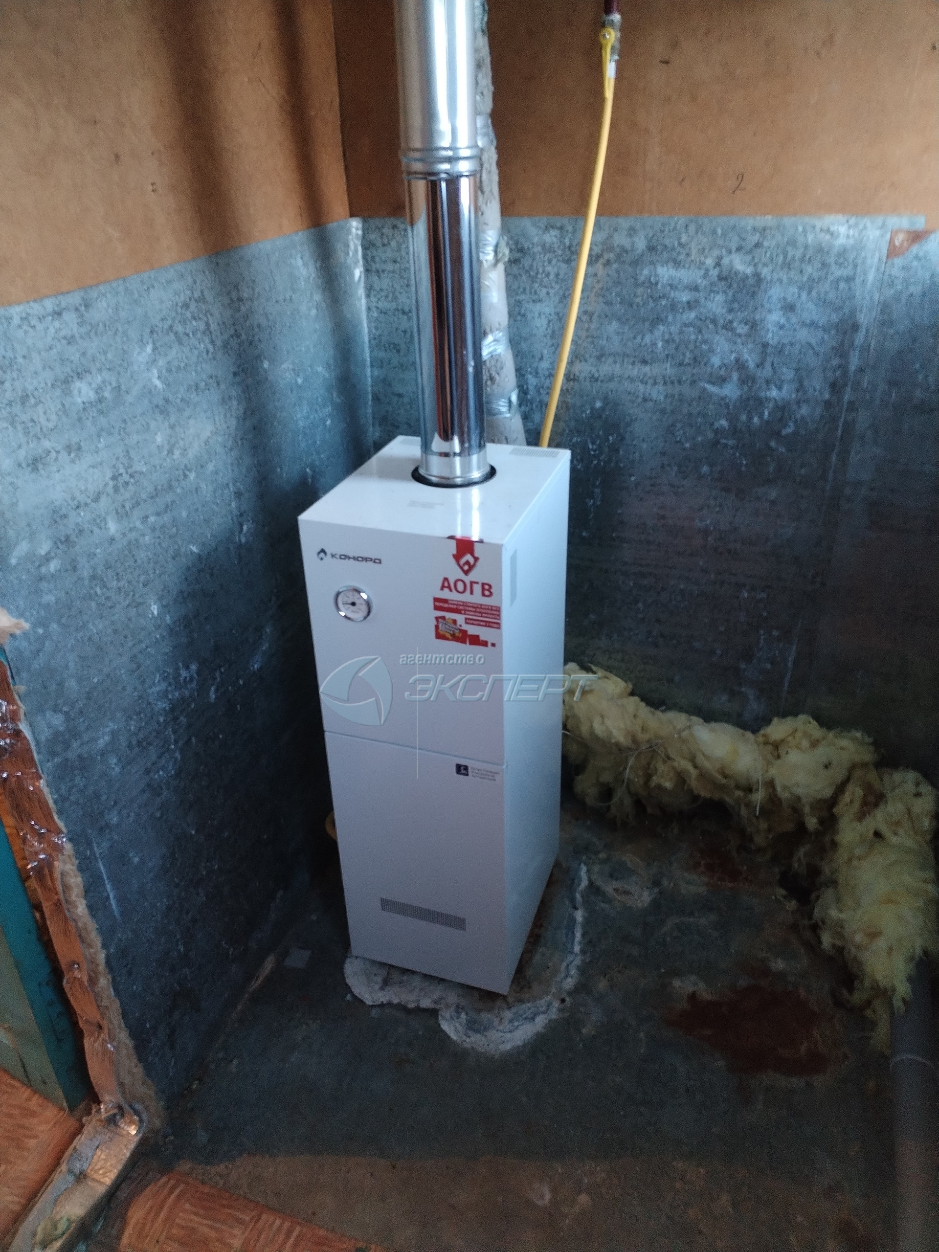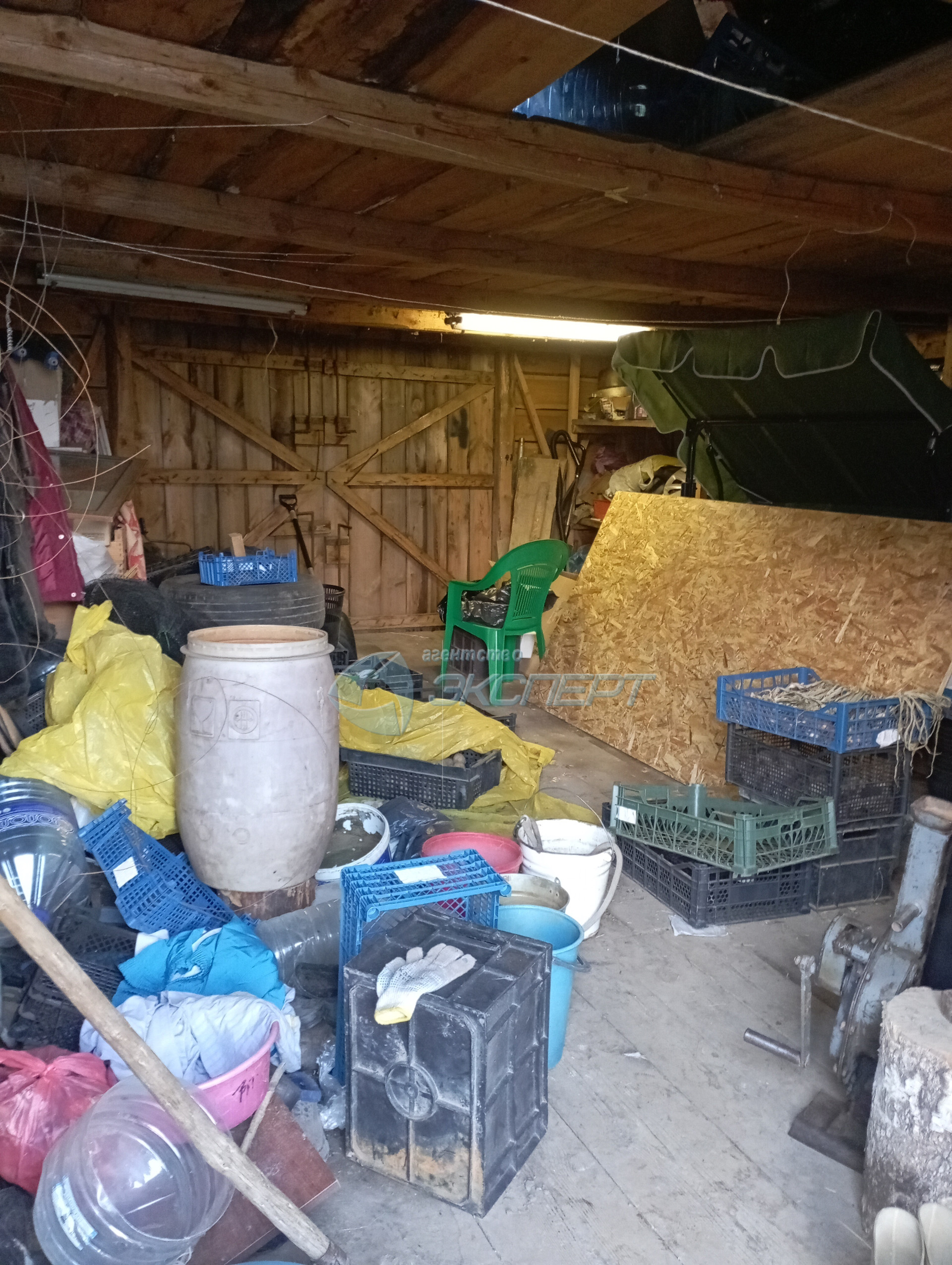 Внутри дома - крепкие деревянные полы. Отопление – газовое, но сохранена печь (в рабочем состоянии). Холодная вода заведена в дом. Санузел отсутствует. На участке есть  большой деревянный гараж, обшитый железом.