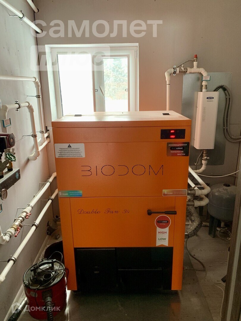 Отопление- котел (на пеллетах) загрузка и автоматическая подача на 3 суток. Для подстраховки электрокотел на 8 кВт. Можно управлять температурой через телефон.