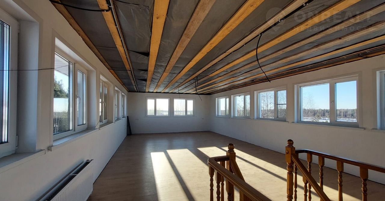 Огромная видовая комната на третьем этаже, в хорошие дни через Вычегду можно увидеть Орбиту.