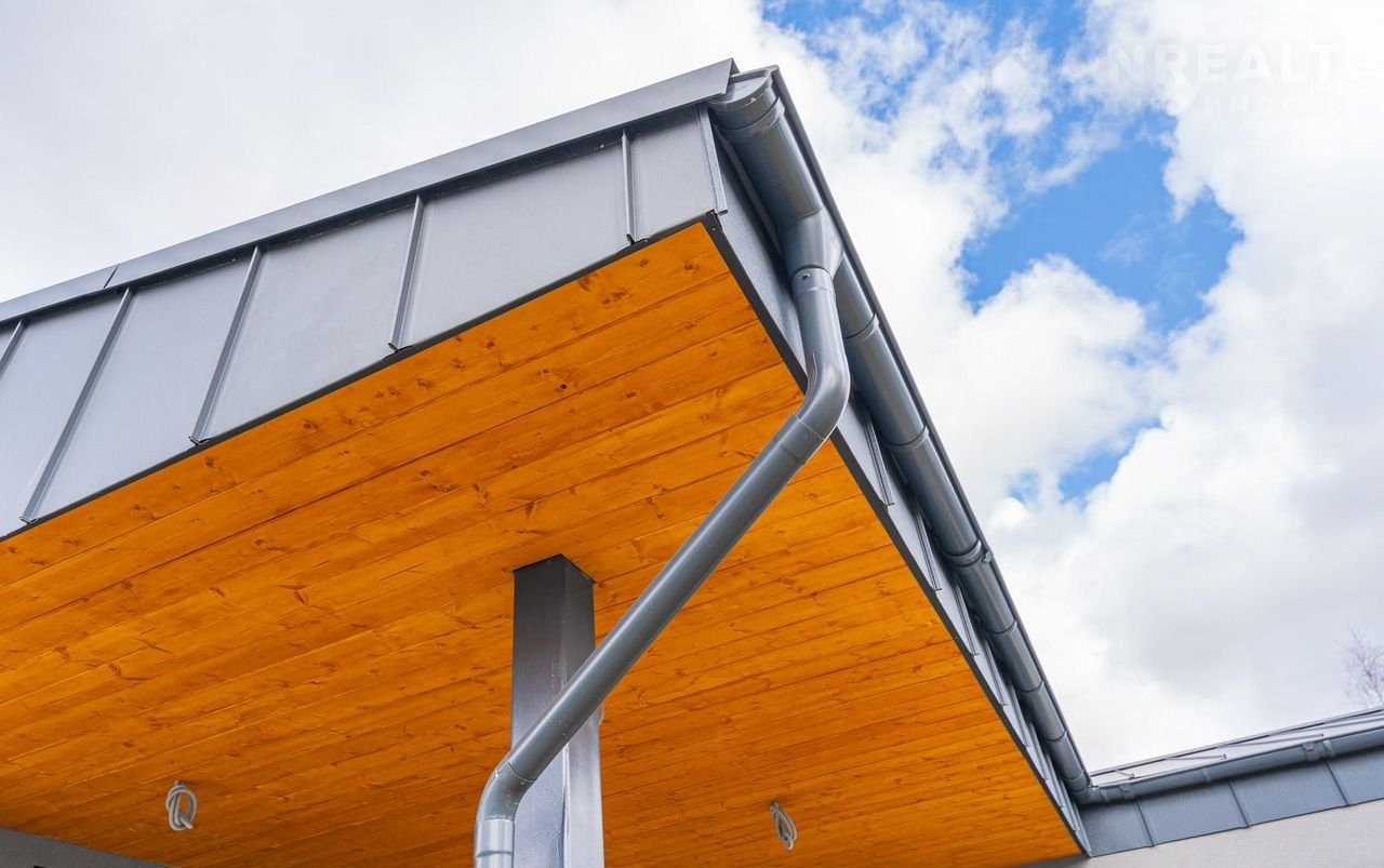 ✔️ Фальцевая кровля с подшивкой из лиственницы, двойной утеплитель и шумоизоляционная подложка (гасит звук дождя, града и ветра, в доме будет тихо даже в сильную непогоду)