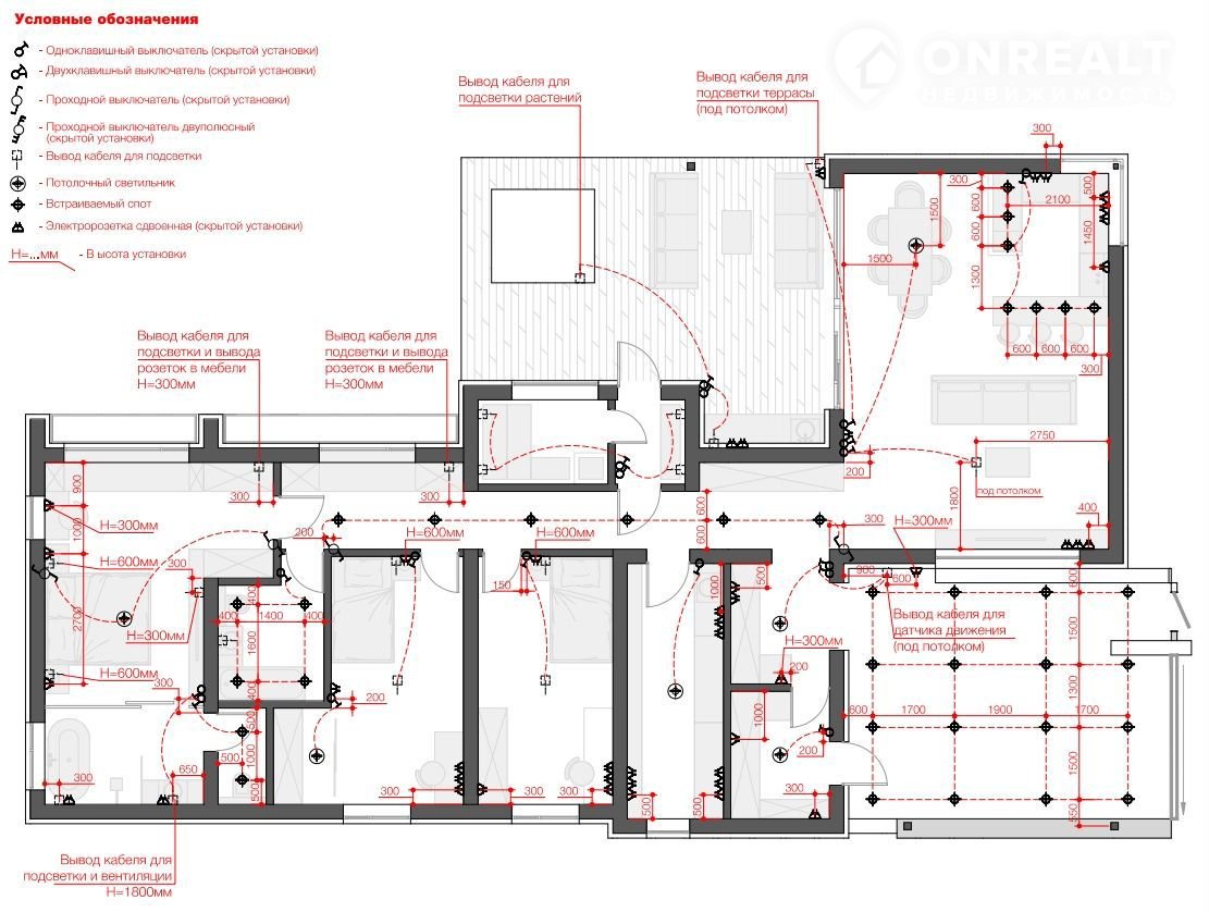 • Мастер-выключатели, скрытая разводка под ТВ и интернет