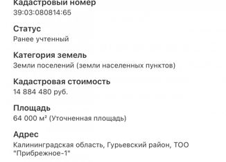 К продаже предлагается земельный участок площадью 1090 кв.м. в экологически чистом развивающемся поселке Ласкино Гурьевского района. Категория земель: земли населенных пунктов. Разрешенное использование: для ведения личного подсобного хозяйства. Межевание: да (уточненная площадь). Правообладание: собственность. Участок правильной прямоугольной формы... |