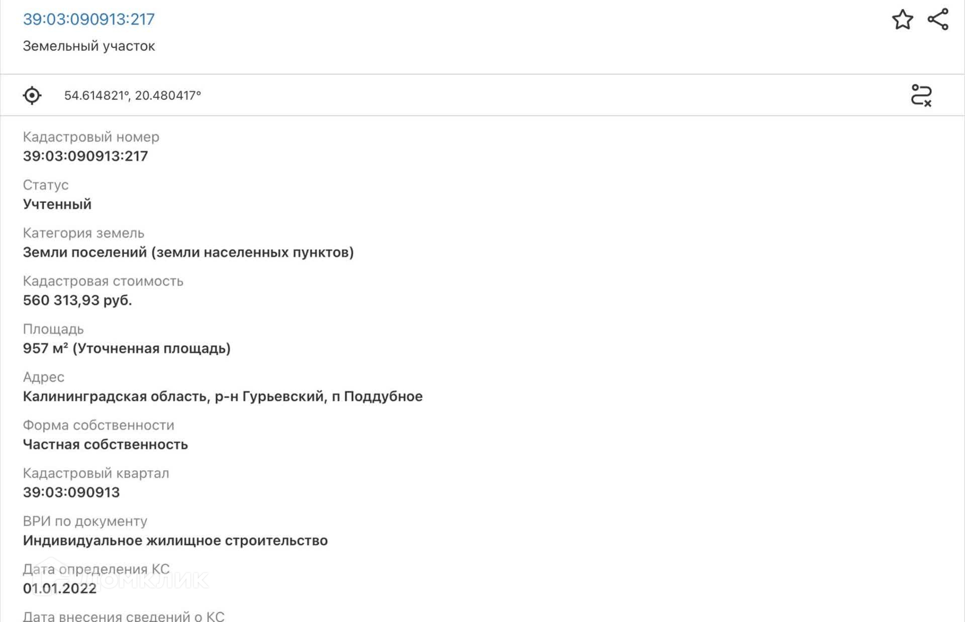Номер в базе: 11190237. Код пользователя: 161057. Район: Поддубное