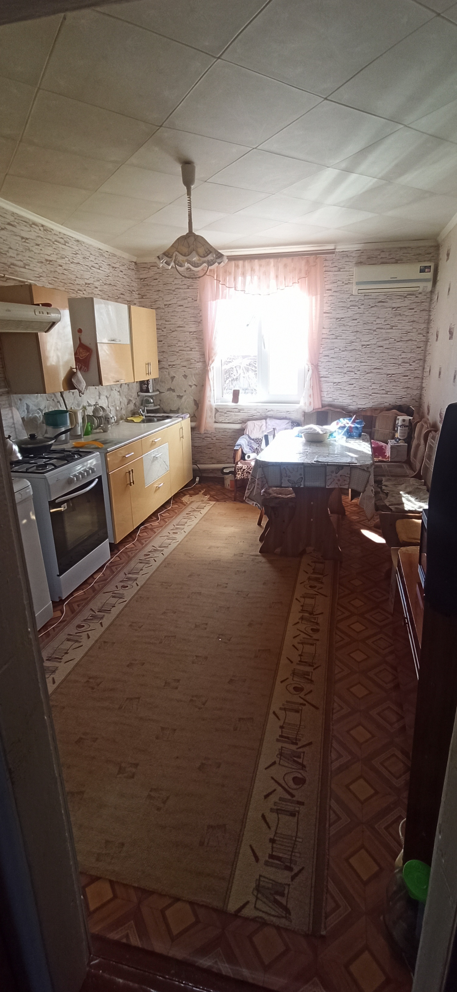 Продается дом кирпичный, светлый, ухоженный! Заезжай живи! Отопление: новый газовый котел. Все удобства в доме. Кухня 12 м. кв. с кондиционером. Окна везде пластиковые. Есть 2 водогрейки. Оставляем практически всю мебель. Во дворе баня, топится газом. Надворные постройки под содержание скотины. В саду фруктовые деревья, малина, клубника, крыжовник, виноград, а также место под посадку овощей. Посмотреть можно в любое время. По запросу отправим видео.