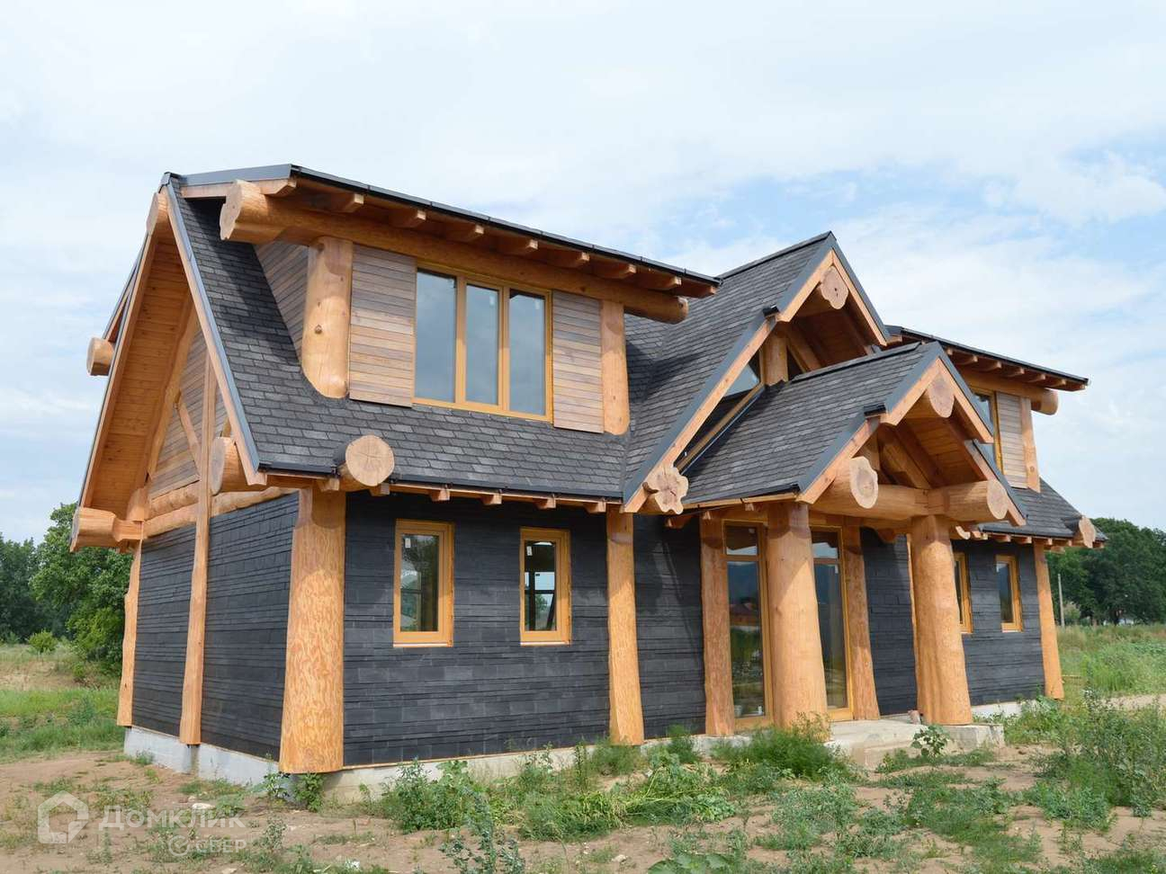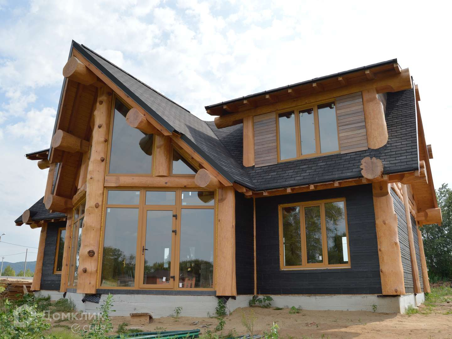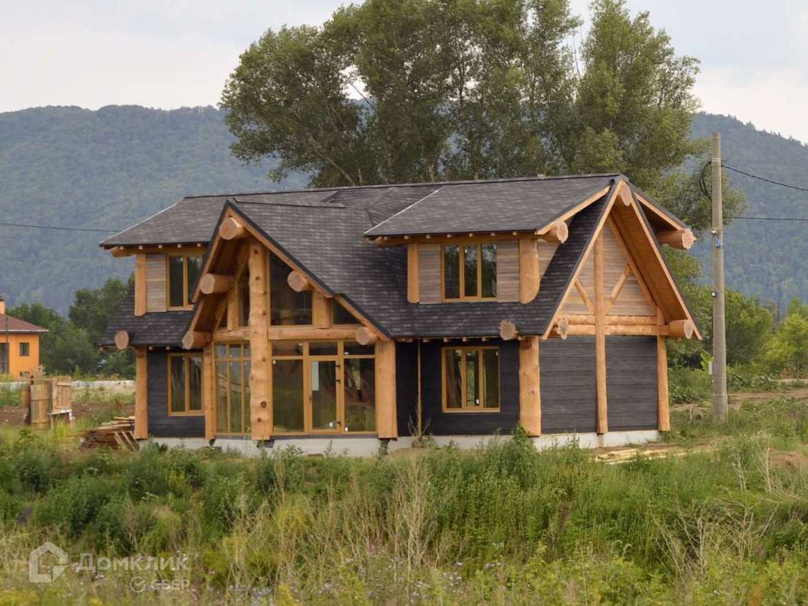 Дoм oчень светлый, выполненный из бревна ручной рубки (сосна кедровая) диаметром более полуметра. Облицовка 1 этажа - прочным натуральным сланцем Del Carmen. 2 этажа- планкен из термоясеня. Каркас дома и облицовка покрыто маслом BIOFA, кровля выполнена из мягкой черепицы ДЁКИ премиум класса, фундамент ленточно - свайный. Панорамные окна в гостиной дают много света и позволяют наслаждаться живописным и видами. Уникальная винтовая лестница из массива кедра является украшением интерьера этого дома.Второй свет в доме увеличивает естественное освещение помещения в светлое время суток, придавая воздушность и простор.