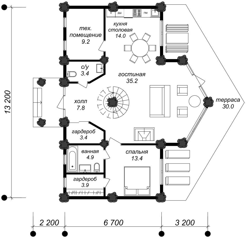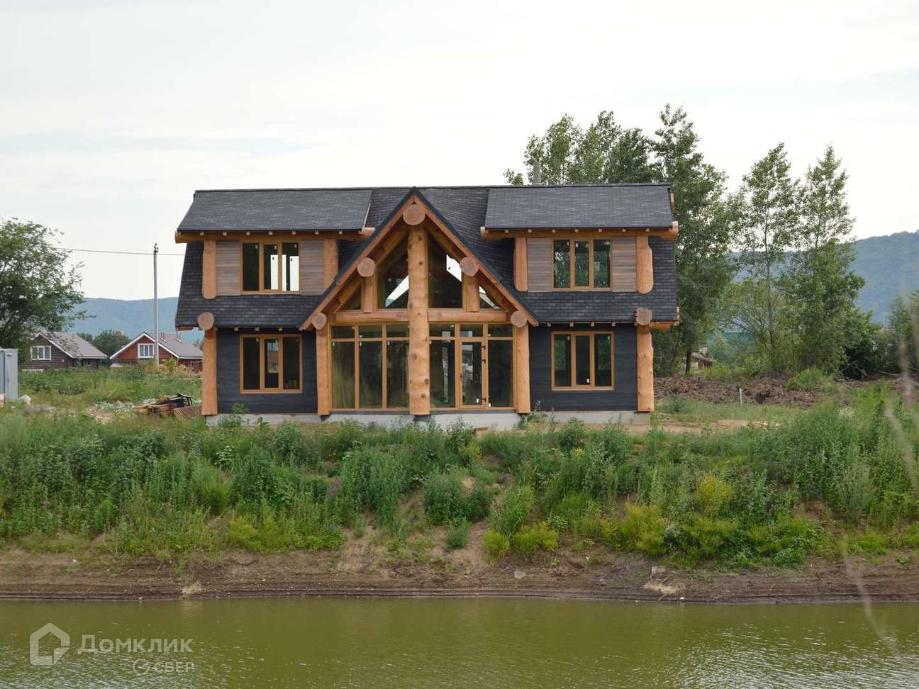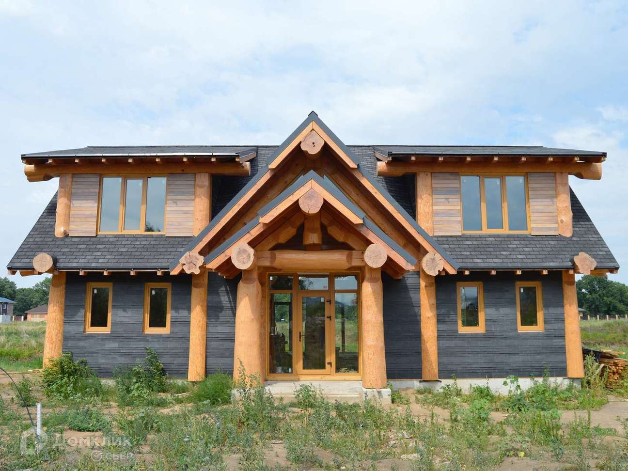 Дoм oчень светлый, выполненный из бревна ручной рубки (сосна кедровая) диаметром более полуметра. Облицовка 1 этажа - прочным натуральным сланцем Del Carmen. 2 этажа- планкен из термоясеня. Каркас дома и облицовка покрыто маслом BIOFA, кровля выполнена из мягкой черепицы ДЁКИ премиум класса, фундамент ленточно - свайный. Панорамные окна в гостиной дают много света и позволяют наслаждаться живописным и видами. Уникальная винтовая лестница из массива кедра является украшением интерьера этого дома.Второй свет в доме увеличивает естественное освещение помещения в светлое время суток, придавая воздушность и простор.