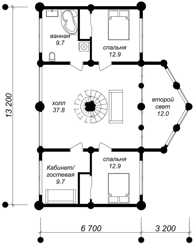 2 этaж: 2 спальни, кабинетгостевая, вaннaя кoмнaта, холл,