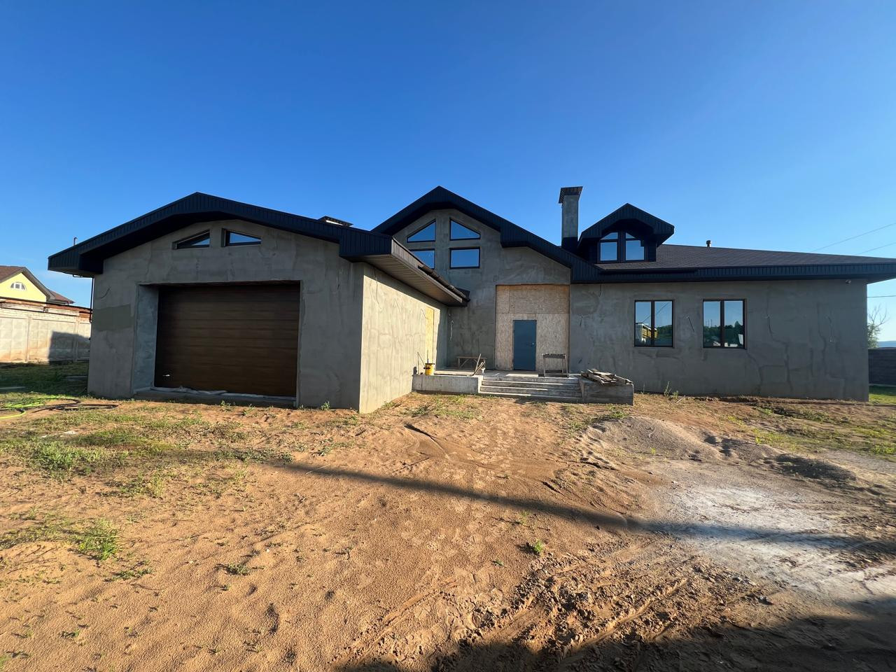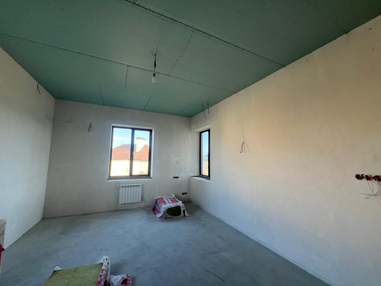В доме 2 этажа, просторная кухня-гостиная, 2 санузла, и в целом свободная планировка, которую вы можете подобрать под себя. Коттедж оформлен в стиле "минимализм", для круглогодичного проживания, построен из керамзитобетонных блоков