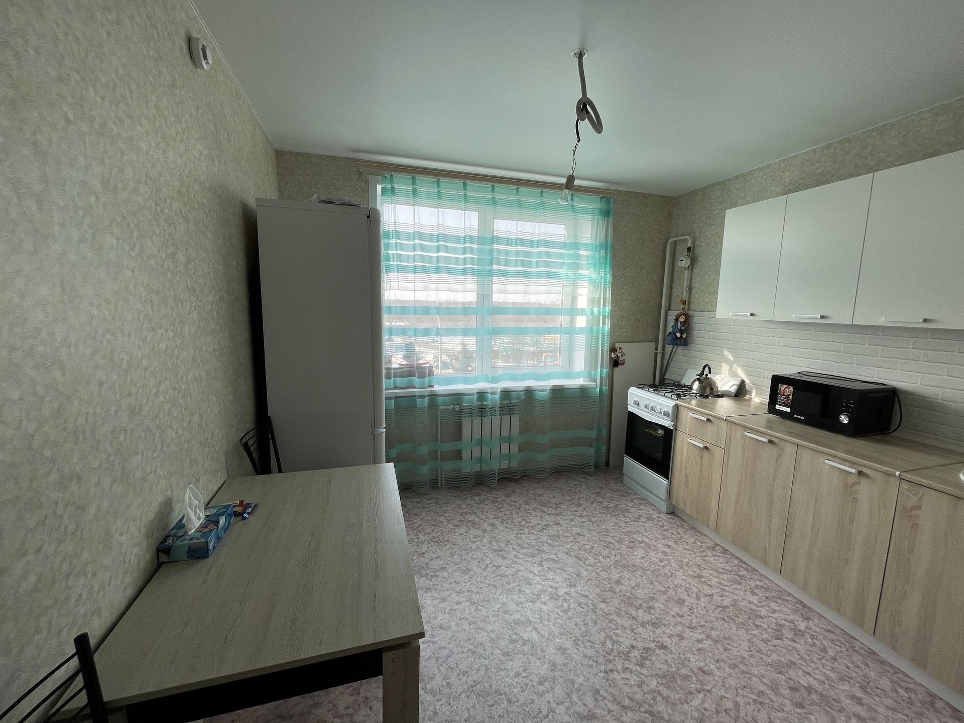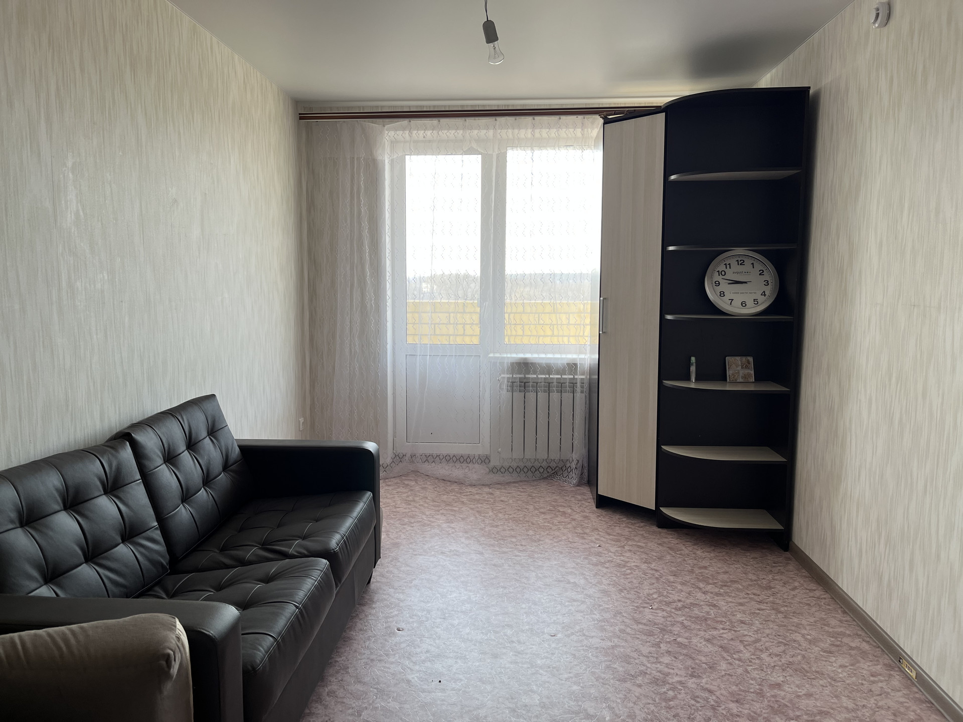 Ремонт в квартире от застройщика, отопление по счетчику, горячая вода круглый год. Балкон не застеклен, продается без мебели. На первом этаже дома «Пятерочка», рядом школа в пяти минутах ходьбы, детский сад и поликлиника 15-20 минут.  Бассейн в трех остановках от дома. Возможен обмен на двухкомнатную квартиру.