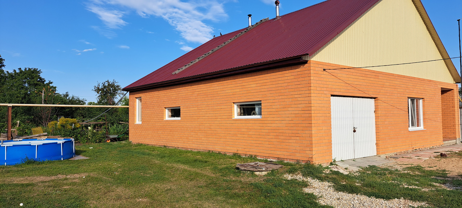 , отопление электро котёл, газовая труба походит в зади дома в дом не подключена. есть гараж на две машины в гараже есть слив для воды.